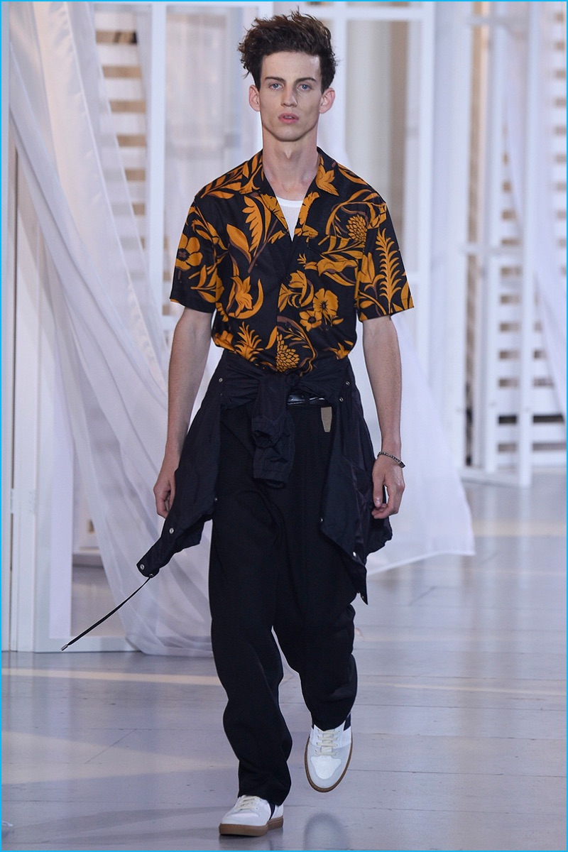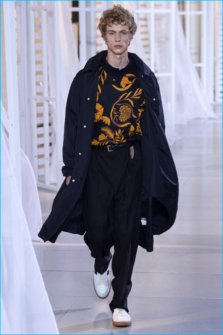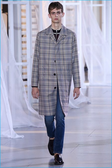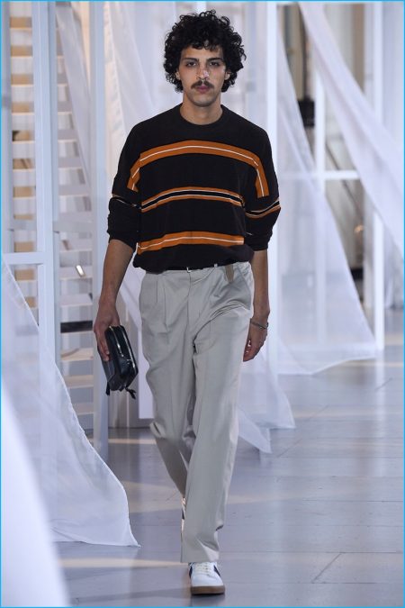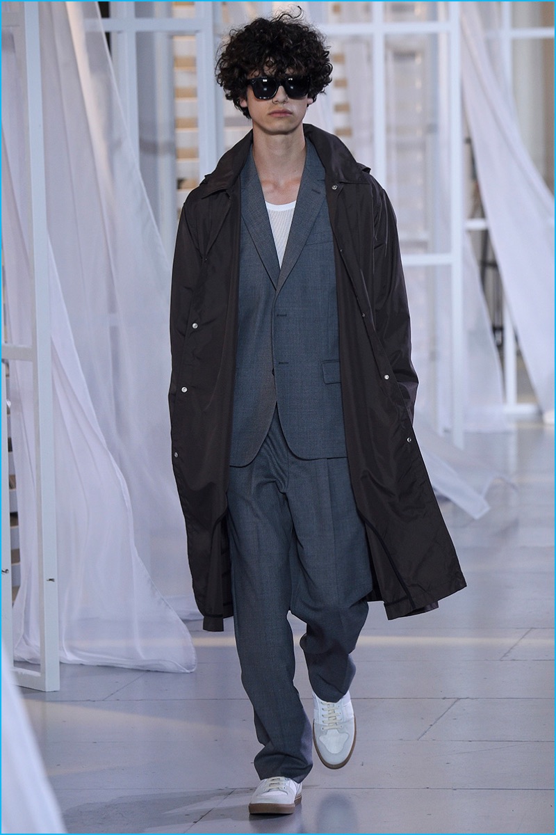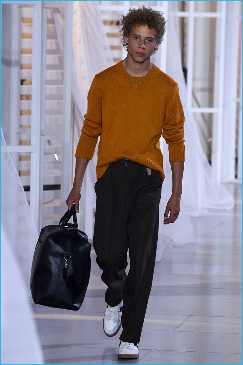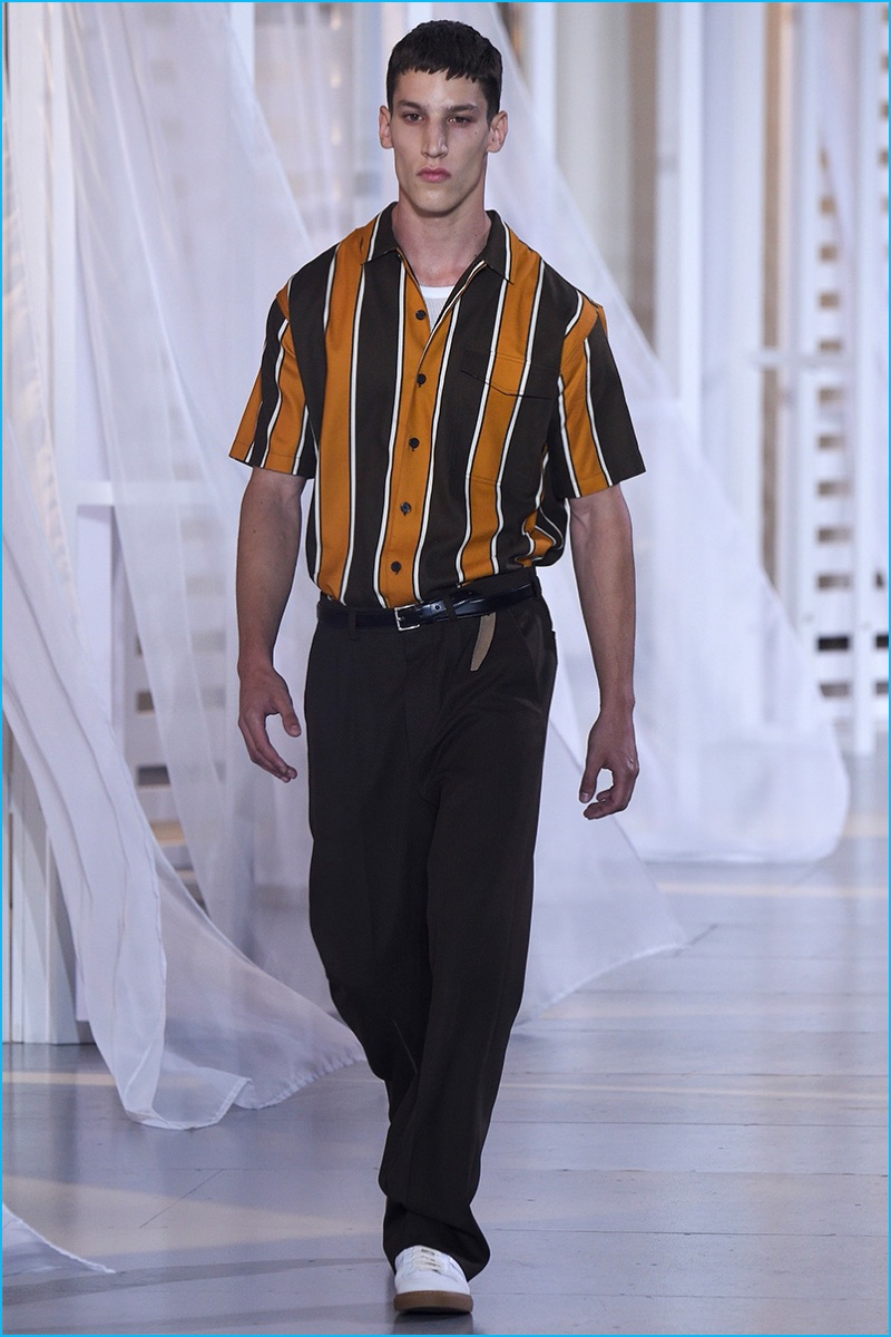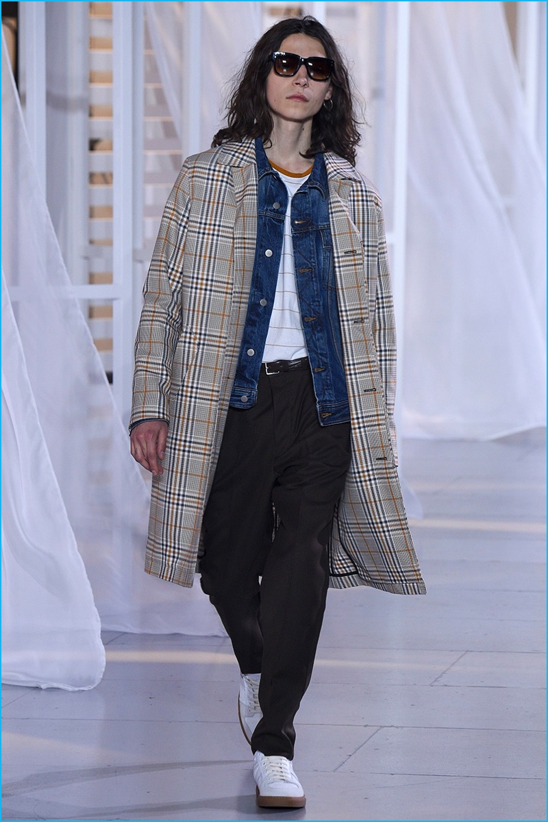 Designer Alexandre Mattiussi contributes an effortless attitude to spring-summer 2017. Ami’s latest collection celebrates Parisian style. The fashion brand’s man represents the Parisian lover this season. A certain ease resonates with a lineup of relaxed proportions. Slouchy trousers, crisp white sneakers, solid bomber jackets, lightweight check coats, retro-style button-down shirts and half-zip pullovers highlight Mattiussi’s practical point of view. Season after season, the designer effortlessly balances contemporary silhouettes with a laid-back approach to style. Spring is no different. The tracksuit rounds out the season with a cheeky but enviable cool.