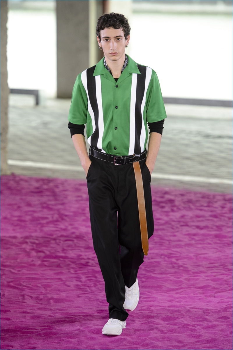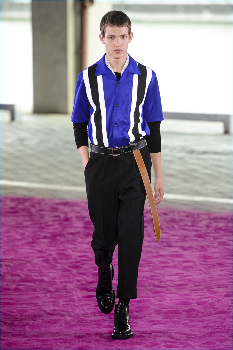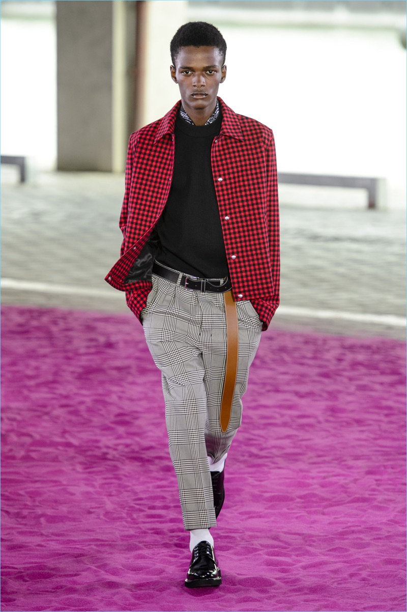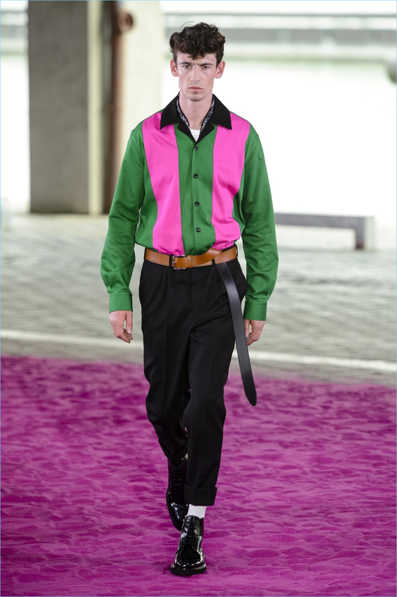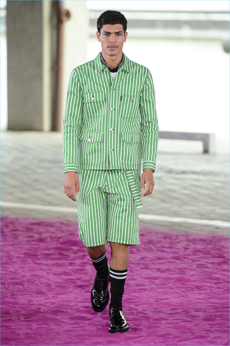Alexandre Mattiussi plays it casual for spring-summer 2018. The designer’s latest lineup for AMI made its way down the catwalk during Paris Fashion Week. The collection elevates basic pieces with a retro flair and a strong use of color. Watermelon hues come together as Mattiussi employs color blocking for the season. Tropical prints also contribute to the outing with holiday-ready shirts and shorts. The graphic pieces create quite the contrast with relaxed trousers and plaid coats.