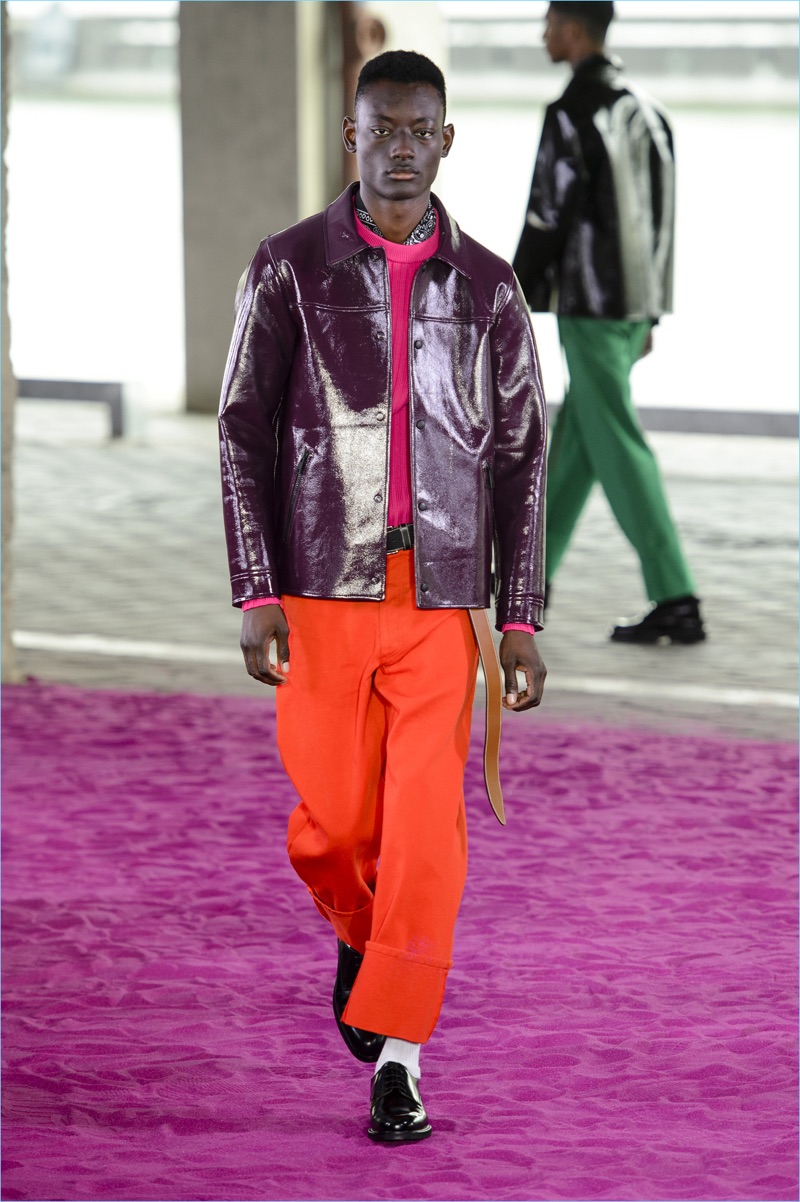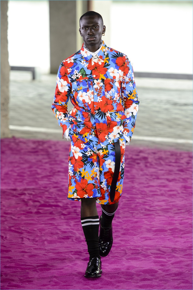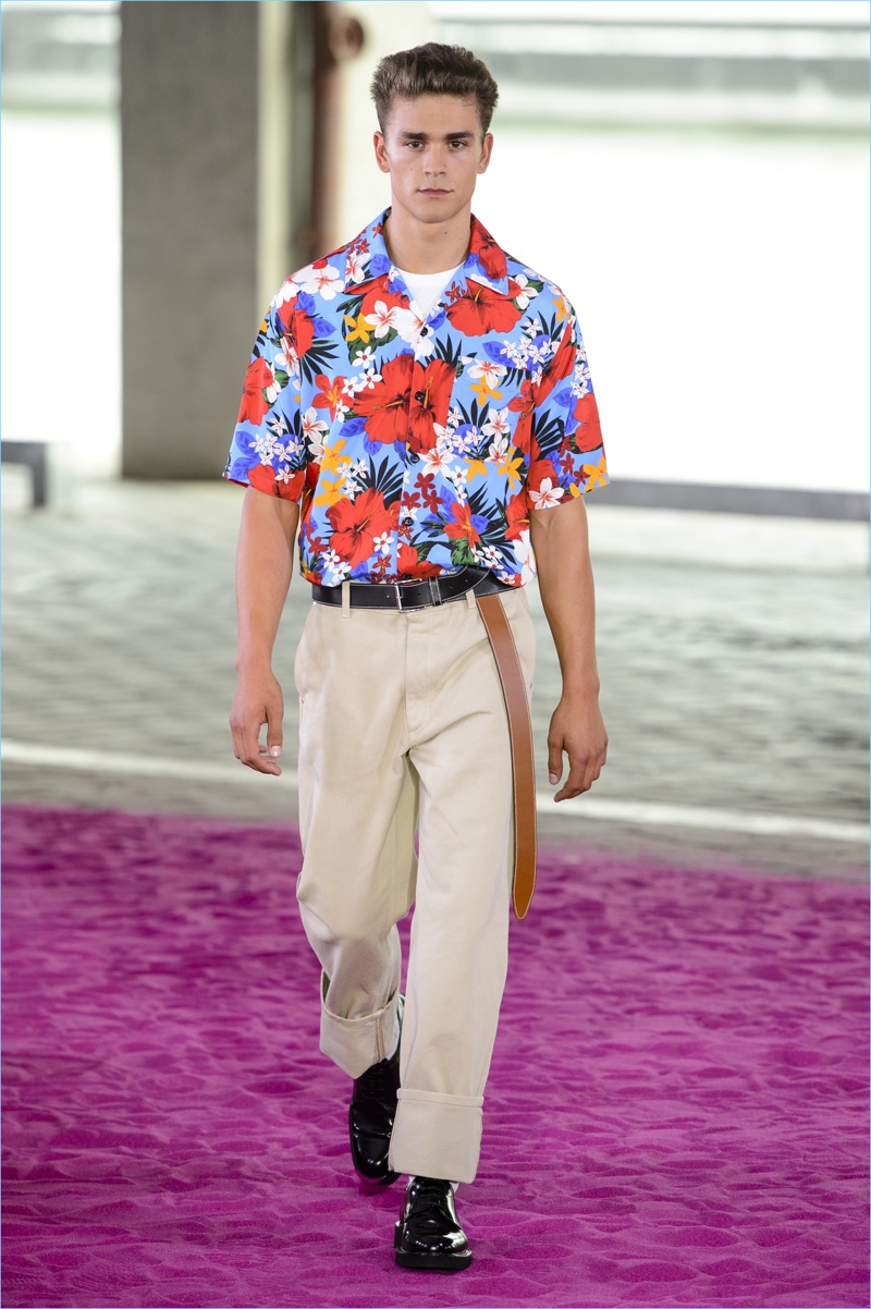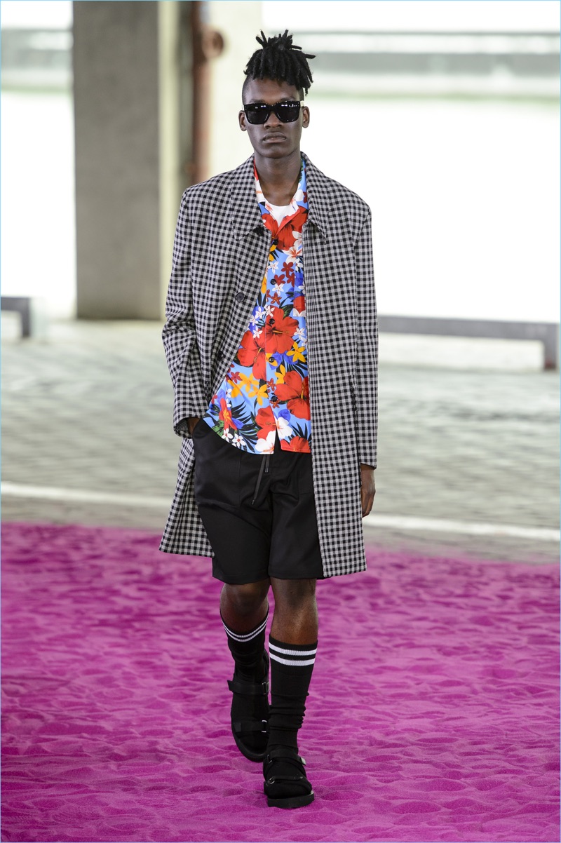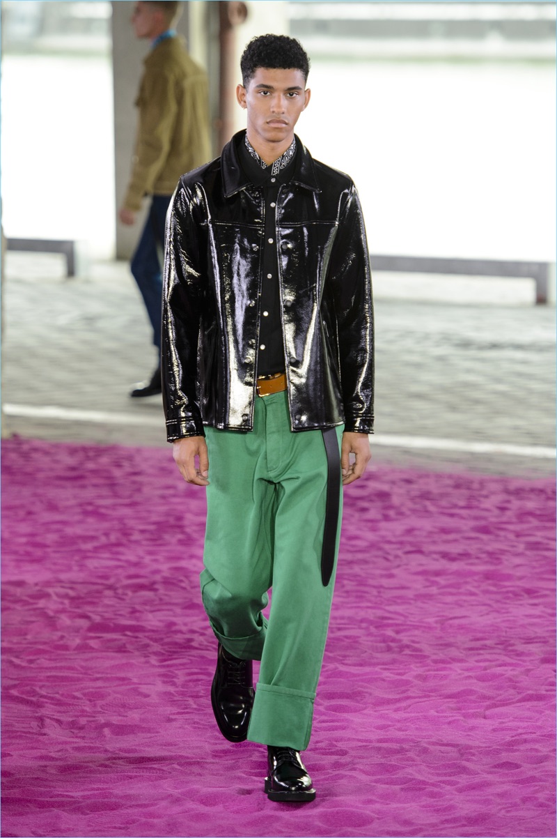 Alexandre Mattiussi plays it casual for spring-summer 2018. The designer’s latest lineup for AMI made its way down the catwalk during Paris Fashion Week. The collection elevates basic pieces with a retro flair and a strong use of color. Watermelon hues come together as Mattiussi employs color blocking for the season. Tropical prints also contribute to the outing with holiday-ready shirts and shorts. The graphic pieces create quite the contrast with relaxed trousers and plaid coats.