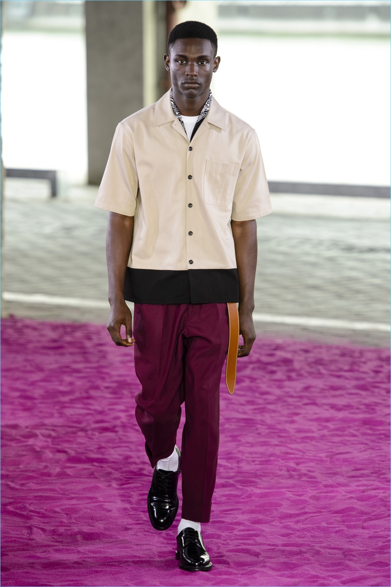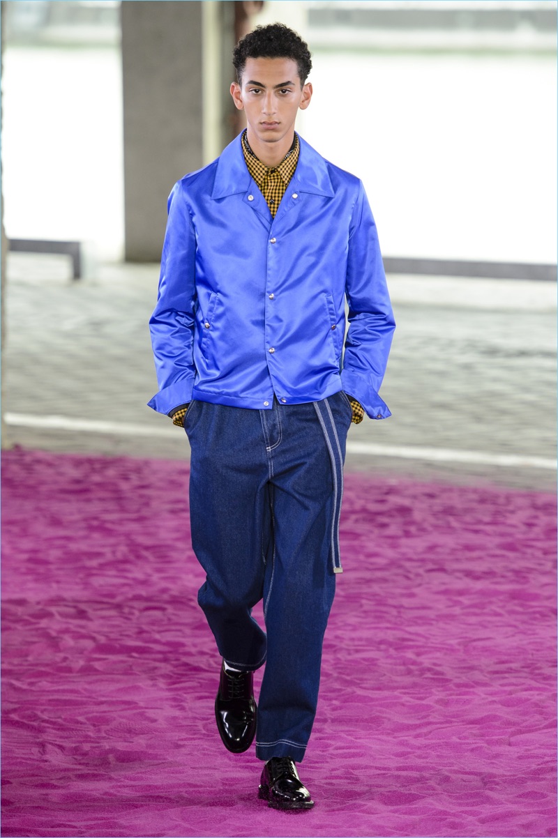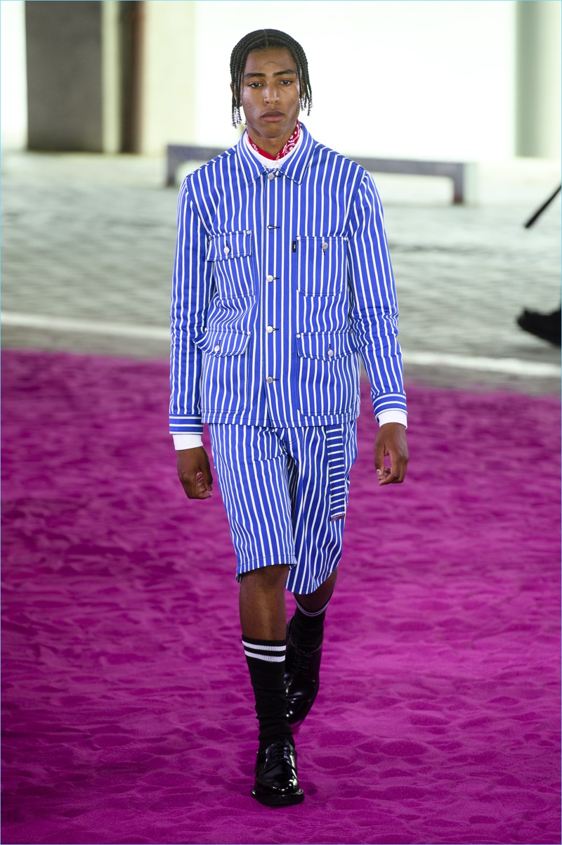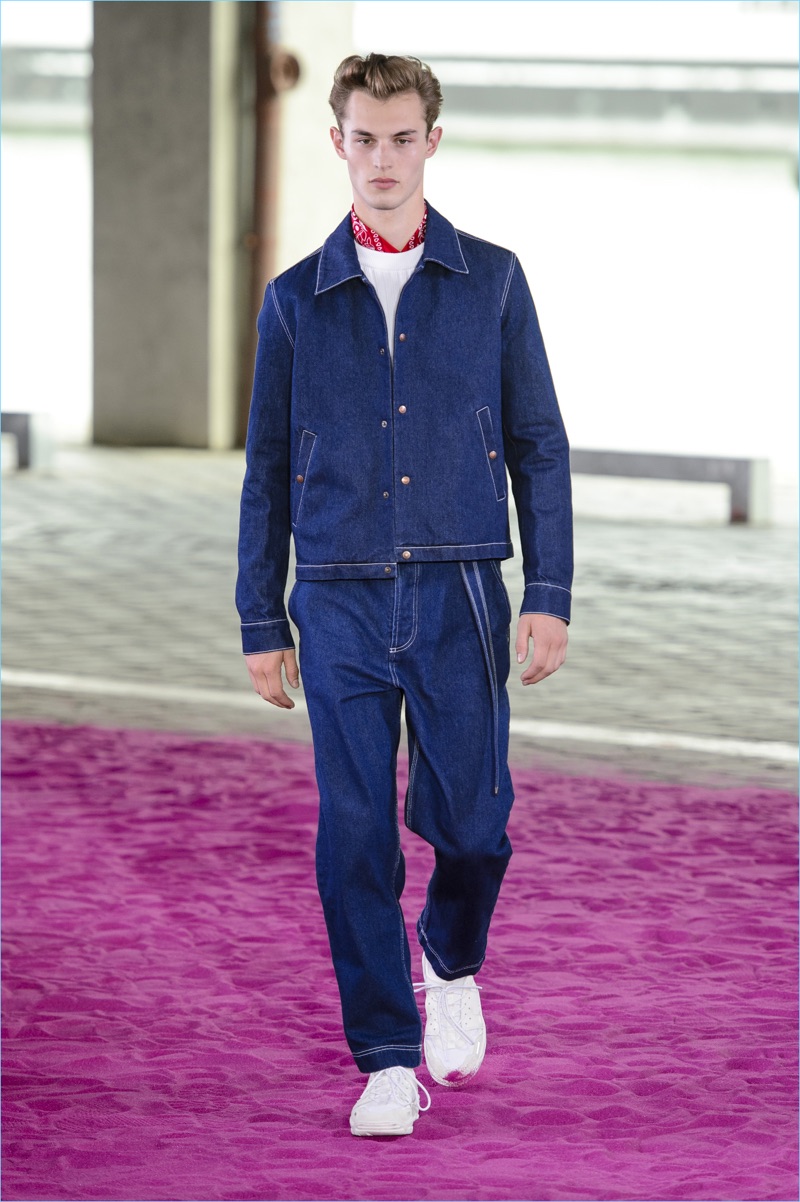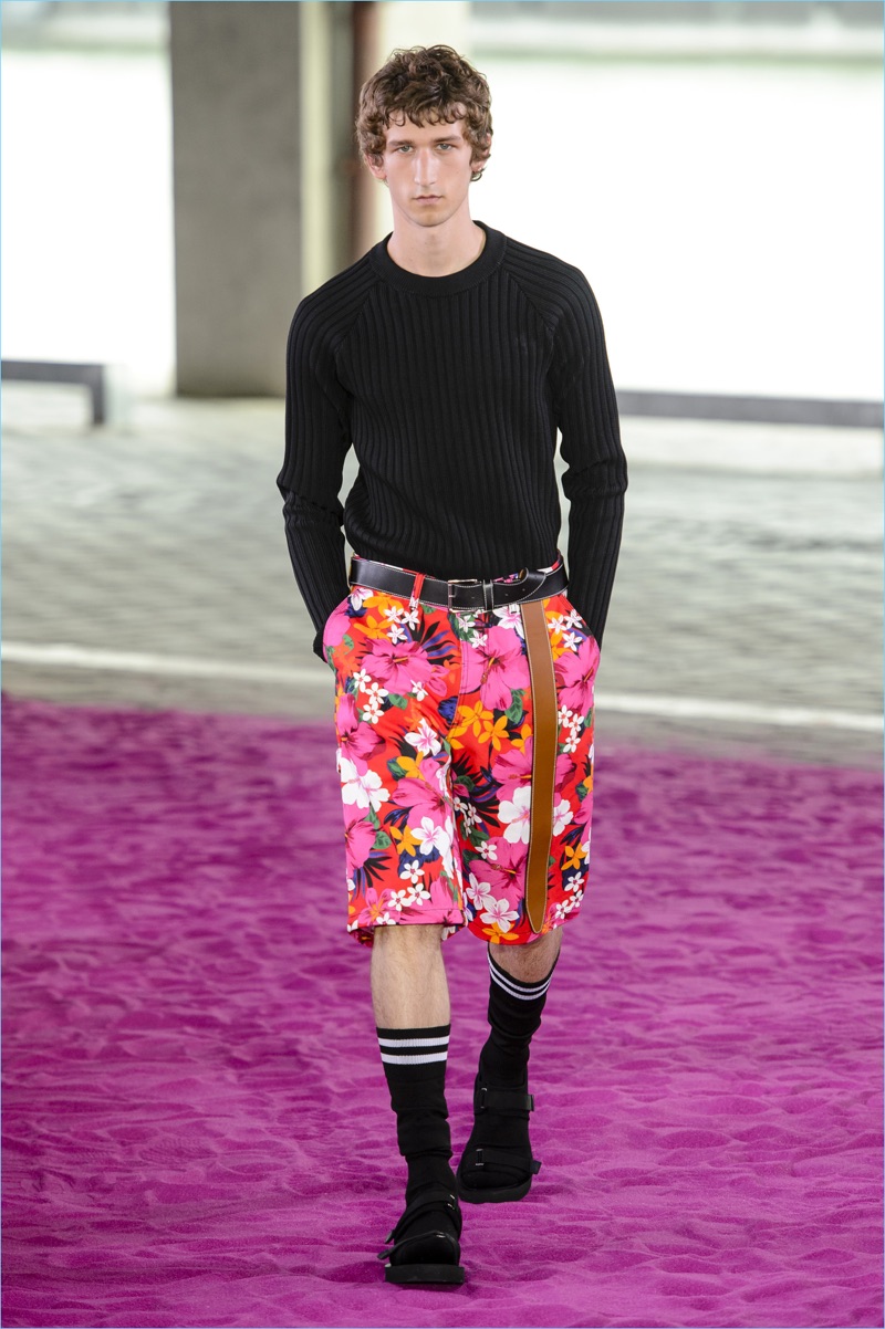 Alexandre Mattiussi plays it casual for spring-summer 2018. The designer’s latest lineup for AMI made its way down the catwalk during Paris Fashion Week. The collection elevates basic pieces with a retro flair and a strong use of color. Watermelon hues come together as Mattiussi employs color blocking for the season. Tropical prints also contribute to the outing with holiday-ready shirts and shorts. The graphic pieces create quite the contrast with relaxed trousers and plaid coats.