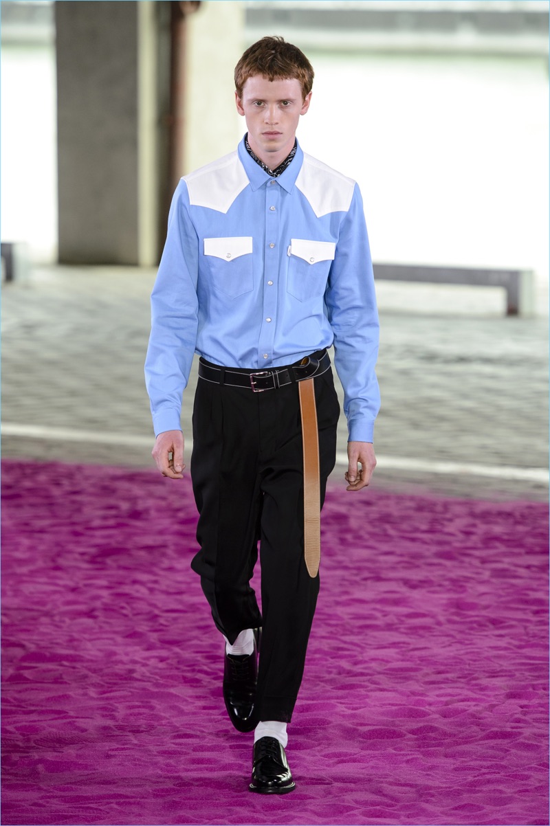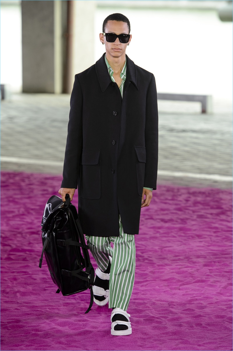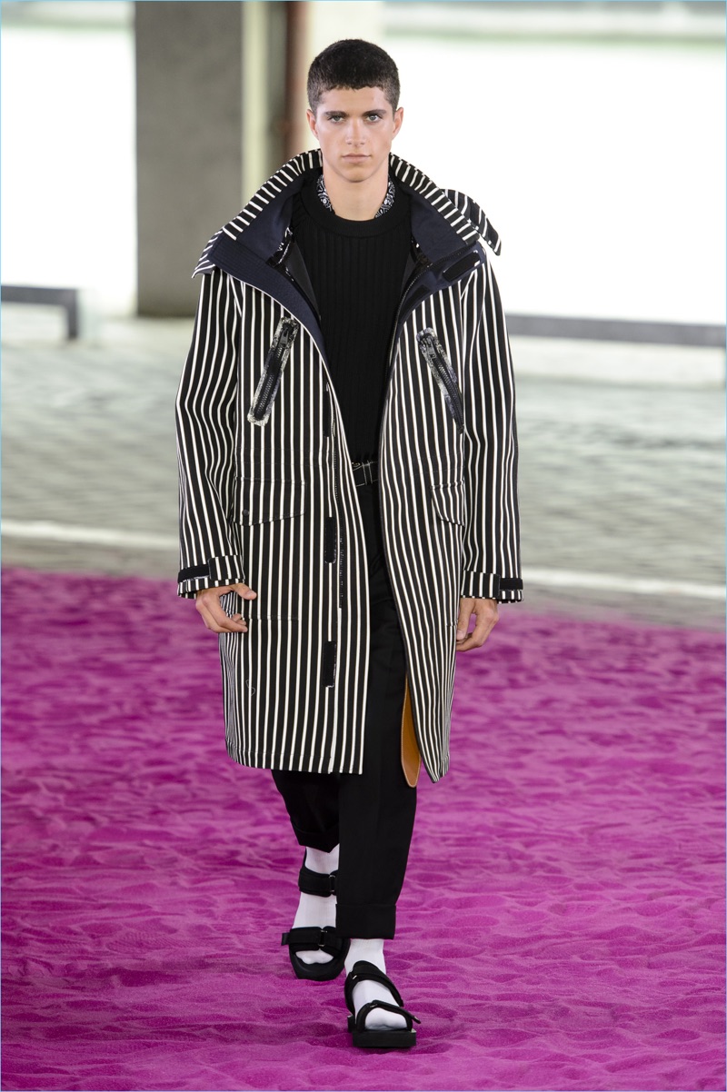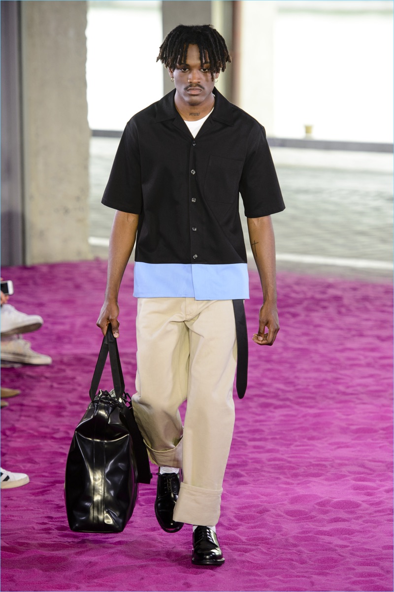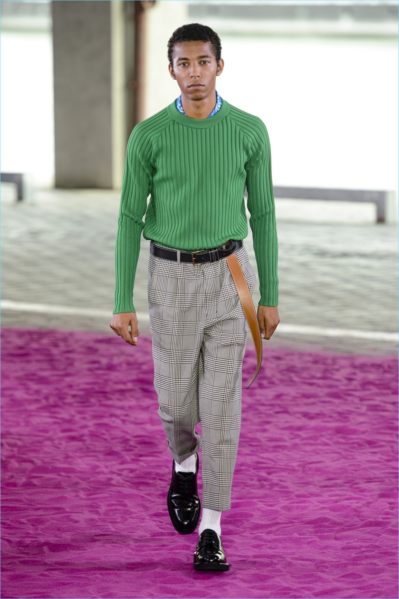 Alexandre Mattiussi plays it casual for spring-summer 2018. The designer’s latest lineup for AMI made its way down the catwalk during Paris Fashion Week. The collection elevates basic pieces with a retro flair and a strong use of color. Watermelon hues come together as Mattiussi employs color blocking for the season. Tropical prints also contribute to the outing with holiday-ready shirts and shorts. The graphic pieces create quite the contrast with relaxed trousers and plaid coats.