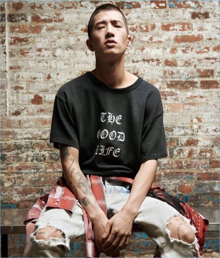 Barneys New York taps into a contemporary grunge moment with its most recent lookbook. The retailer puts the spotlight on cool brand of the moment, AMIRI. Model Nathaniel Dam stars in the outing, taking to a studio with photographer, Dominick Sheldon. Embracing street-worthy styles, Nathaniel models a lineup of covetable outfits. Nathaniel sports AMIRI’s effortless selection of ripped denim jeans, must-have jackets, and relaxed t-shirts.
