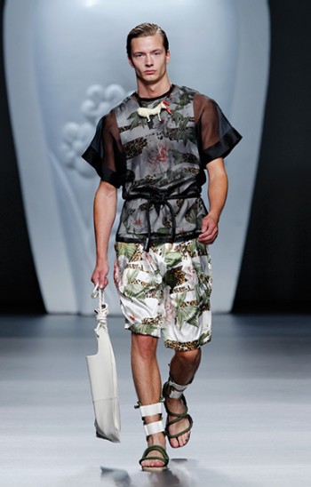 The Talk–Exploring proportions, aimed at the top and bottom half of the body, Ana Locking hones in on a soft approach to menswear with draped fabrics and refined materials contributing to her spring/summer 2013 collection. While tops are opened up with wide-cut sleeves and often cinched at the waist with a belt, shorts and trousers taper for a more polished look. Reinforcing a casual standard with t-shirt cut shapes and adding a special character, courtesy of exotic prints, Ana Locking rounds out the season with a sophisticated image of her man, mixing leisure and luxury.