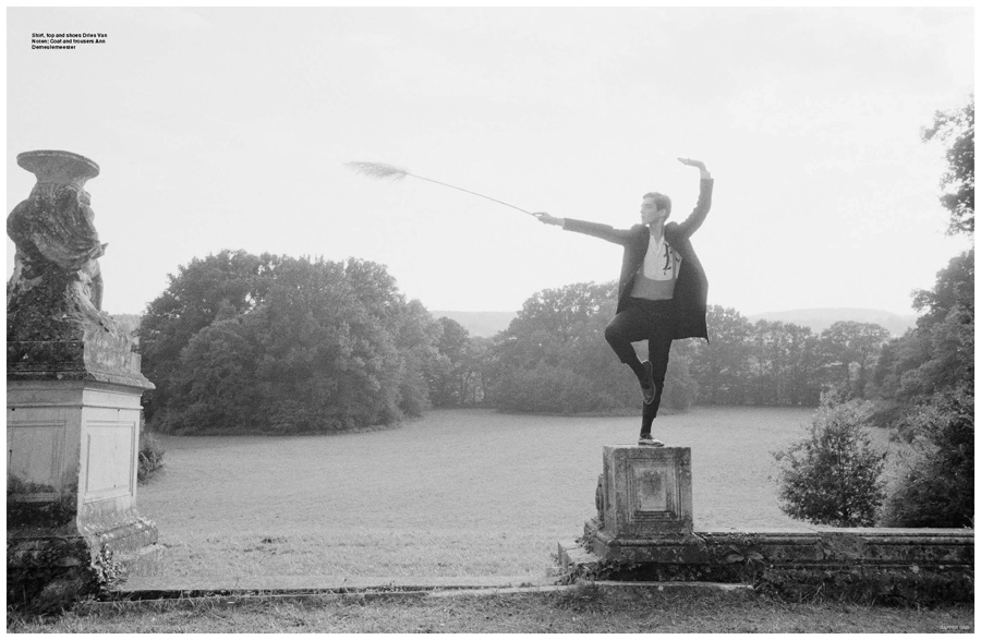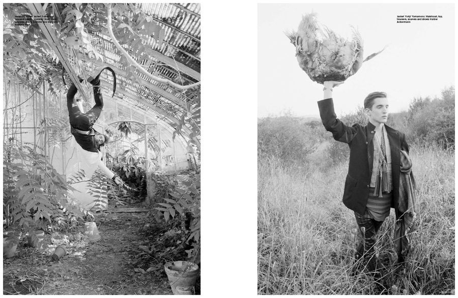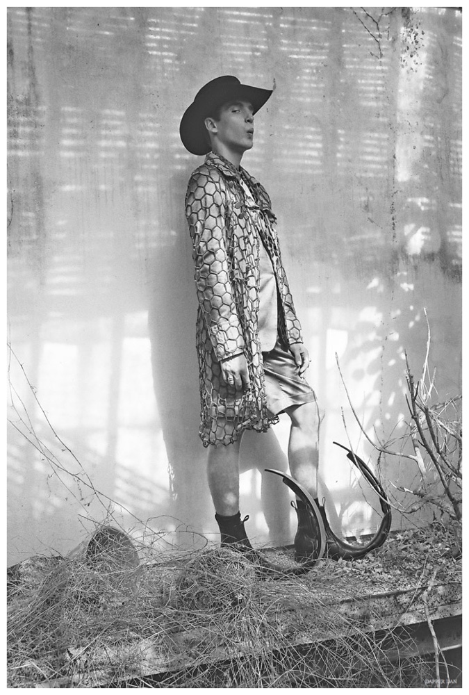 Hitting an eccentric stride, Anatol Modzelewski charms in a new editorial from Dapper Dan. The Bananas model heads outdoors in striking fashions from the likes of Comme des Garçons, posing for images by photographer Adrian Crispin. / Styling by Nicholas Georgiou.