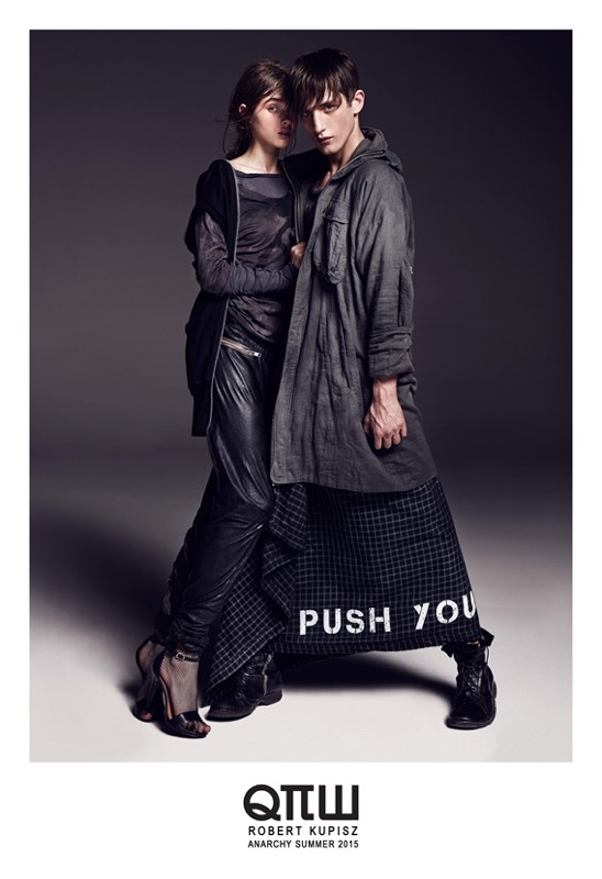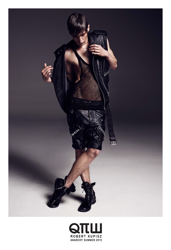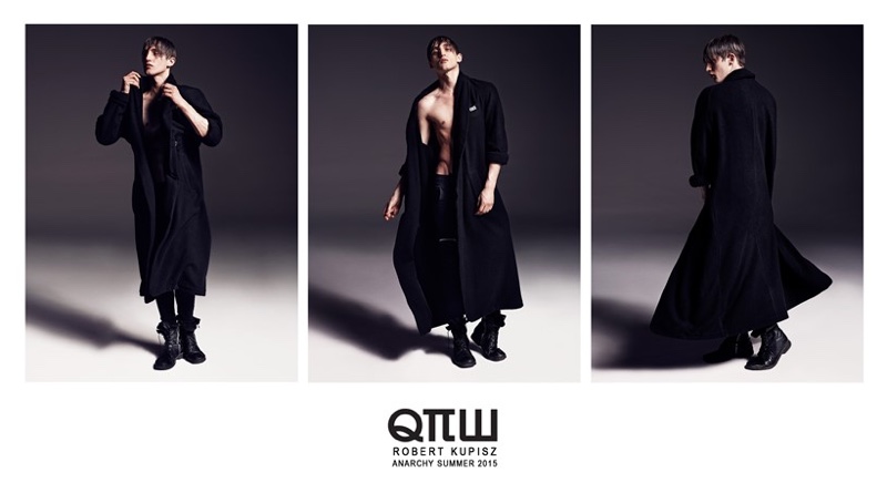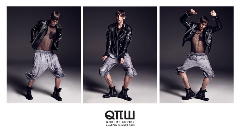 Polish model Anatol Modzelewski shows off his versatility as he takes to the studio for Robert Kupisz Anarchy’s summer 2015 campaign advertisement. The Panda model is captured by the lens of photographer Marcin Tyszka, hitting one pose after the next. Sporting dark, adventurous spring fashions, Anatol is styled by Magda Jagnicka. / Makeup by Marianna Yurkiewicz. Hair Michal Bielecki.