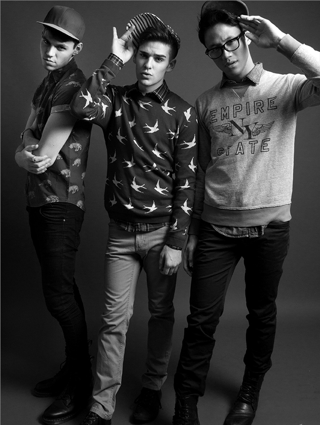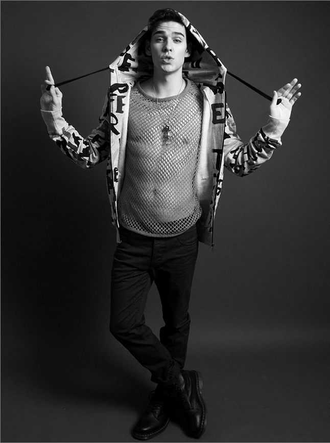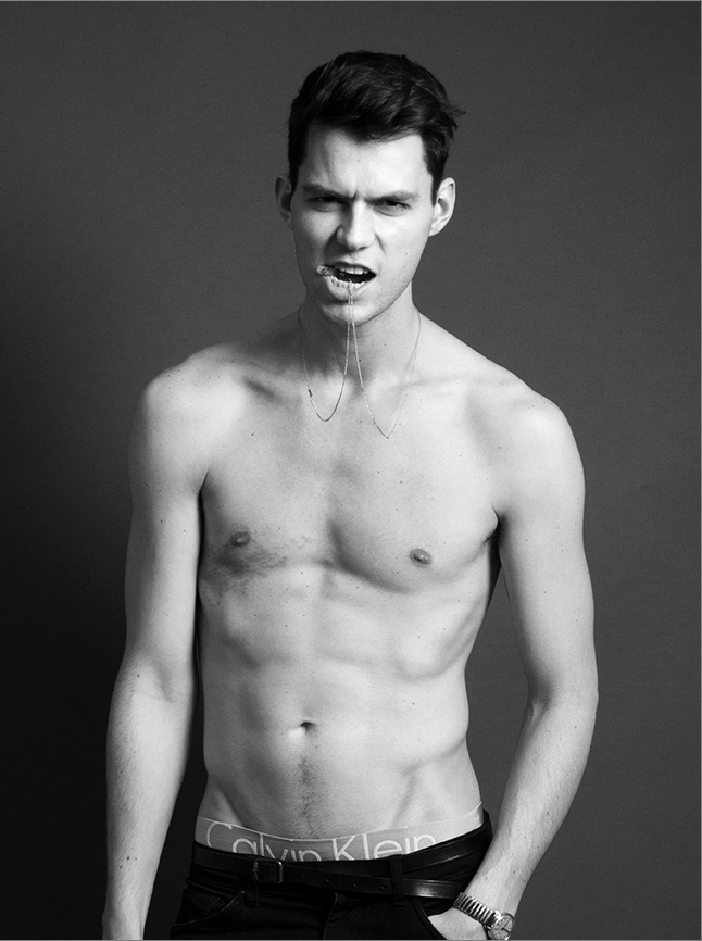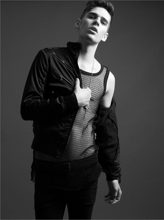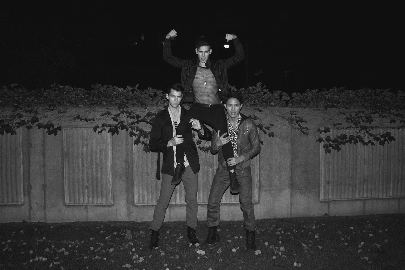 And the Night Belongs to Us–Elite Toronto models Justin M & Stefan joined with Push models Feras & Rama Luksiarto for a black & white story photographed by Patrick Lacsina. Capturing the energy of youth, Lacsina beautifully lensed the models in both studio and outdoor images, showcasing a relaxed wardrobe, assembled by stylist Aaron Quindipan, that played with printed tees and shirts, denim pieces and see-through tank tops. / Grooming by Amanda Blair.