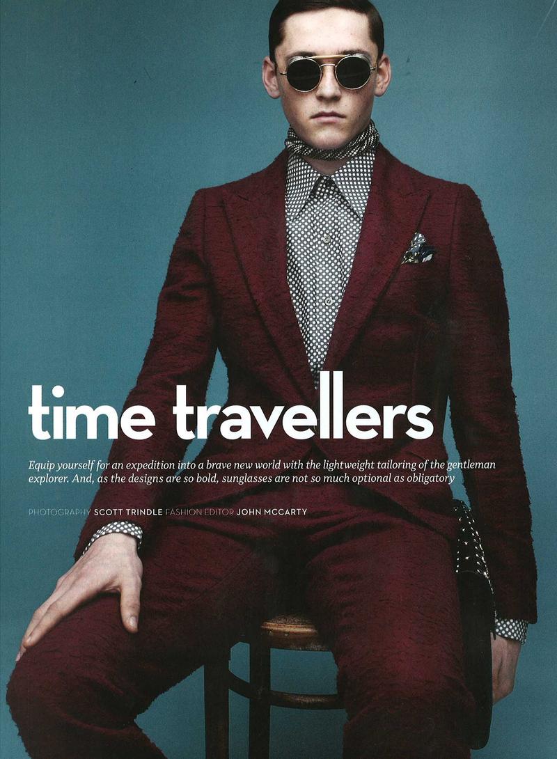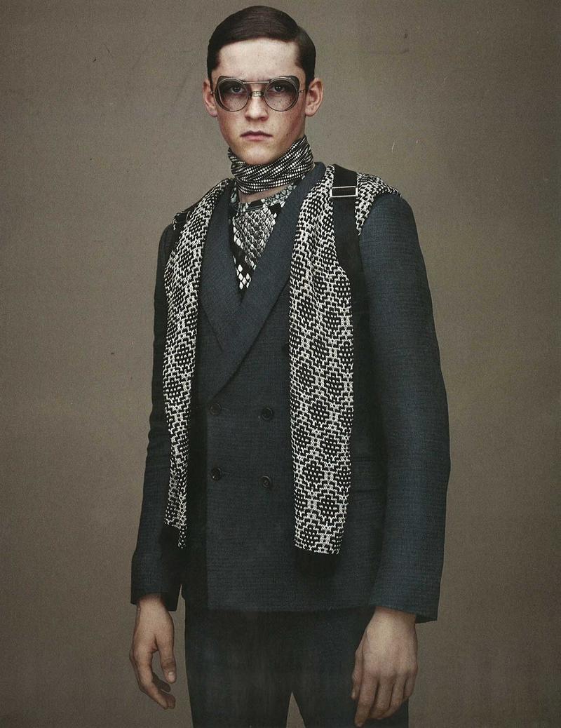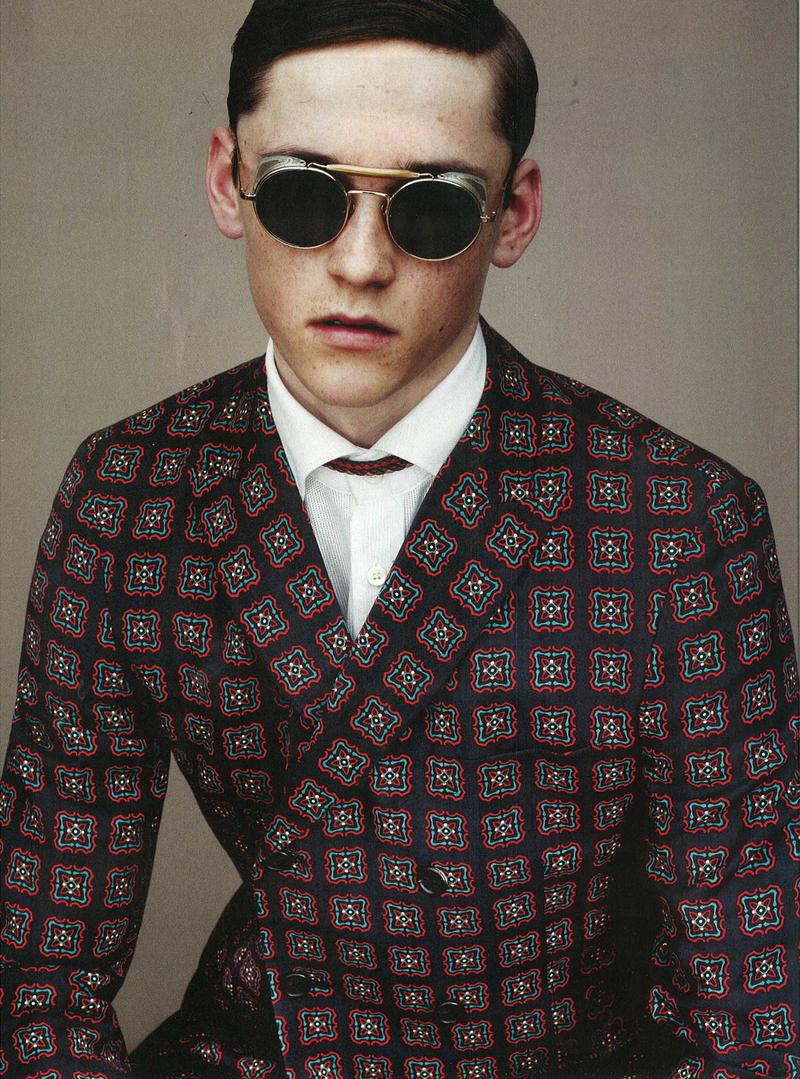 Brave Elegance–Bananas model Anders Hayward stars in a fashion story shot by photographer Scott Trindle for The Sunday Telegraph. Styled by John McCarty, Anders handles a refined and sophisticated wardrobe, consisting of tailored suits, studs and graphic prints, defining a brave way to play with the more formal fashion fundamentals.