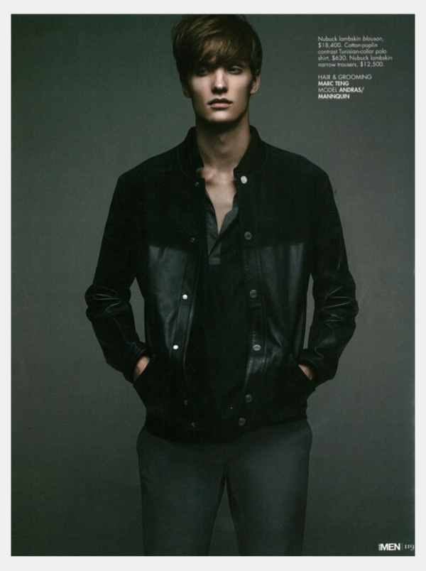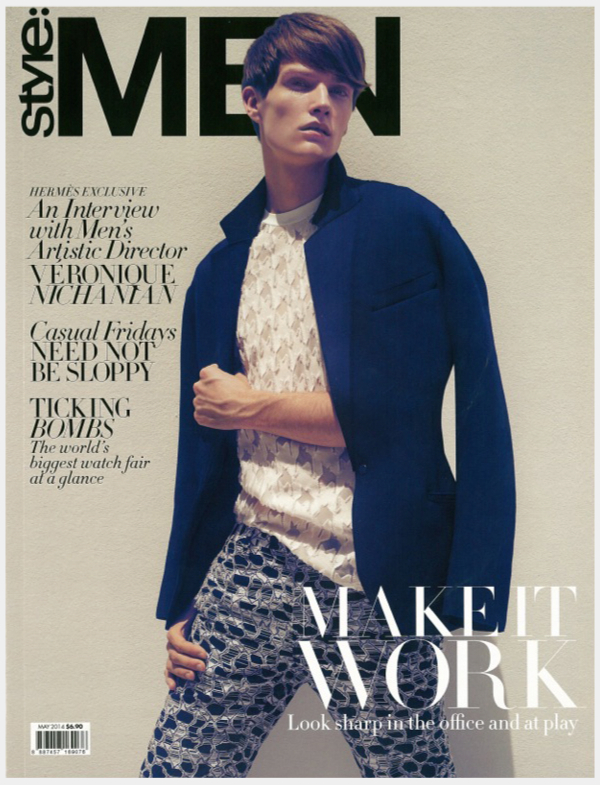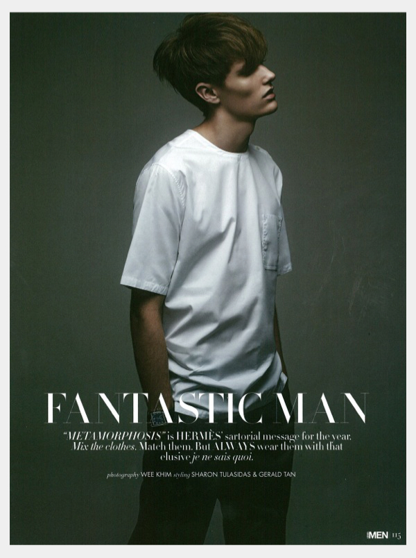 Fantastic Man–Photographed by Wee Khim, Andras (Mannequin/Want Management) covers the May issue of Style:Men with a story dedicated to Parisian label Hermes. Styled by Sharon Tulasidas and Gerald Tan in the latest Hermes fashions, Andras is a relaxed vision. Showcasing the comfortable aspects of menswear that Hermes creative director Veronique Nichanian has made luxurious, the spread earns style points with oversized t-shirts, soft lightweight leather and sophisticated prints.