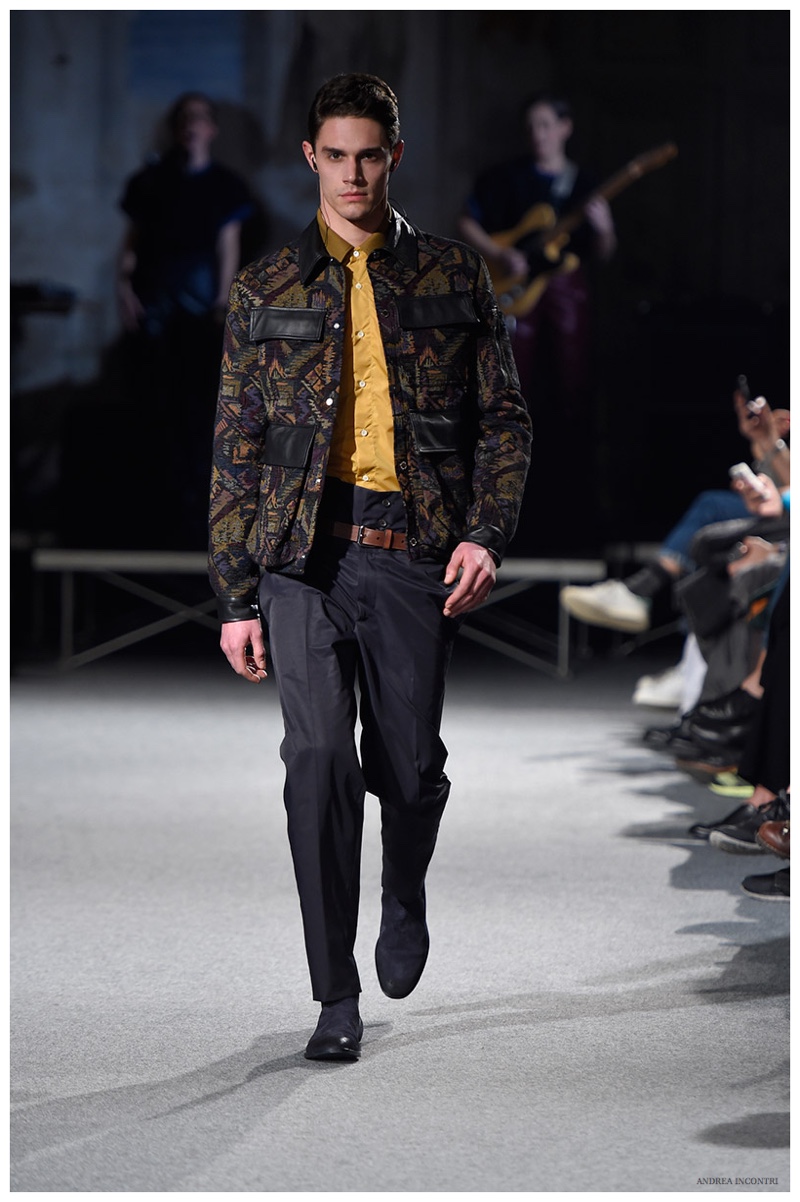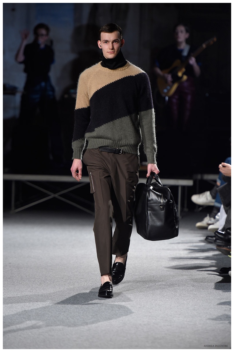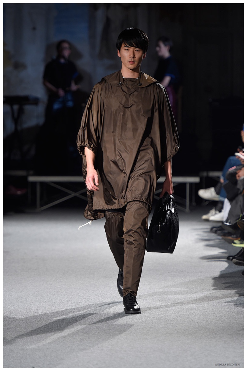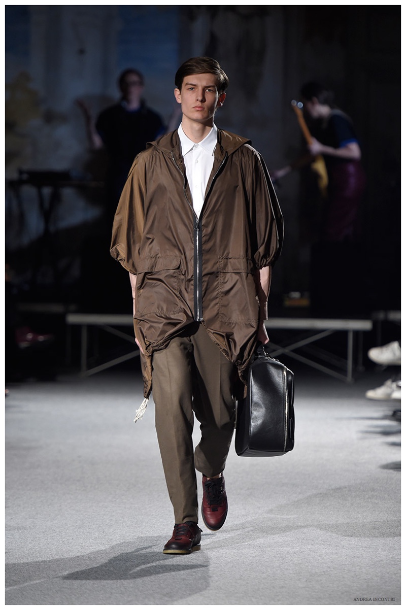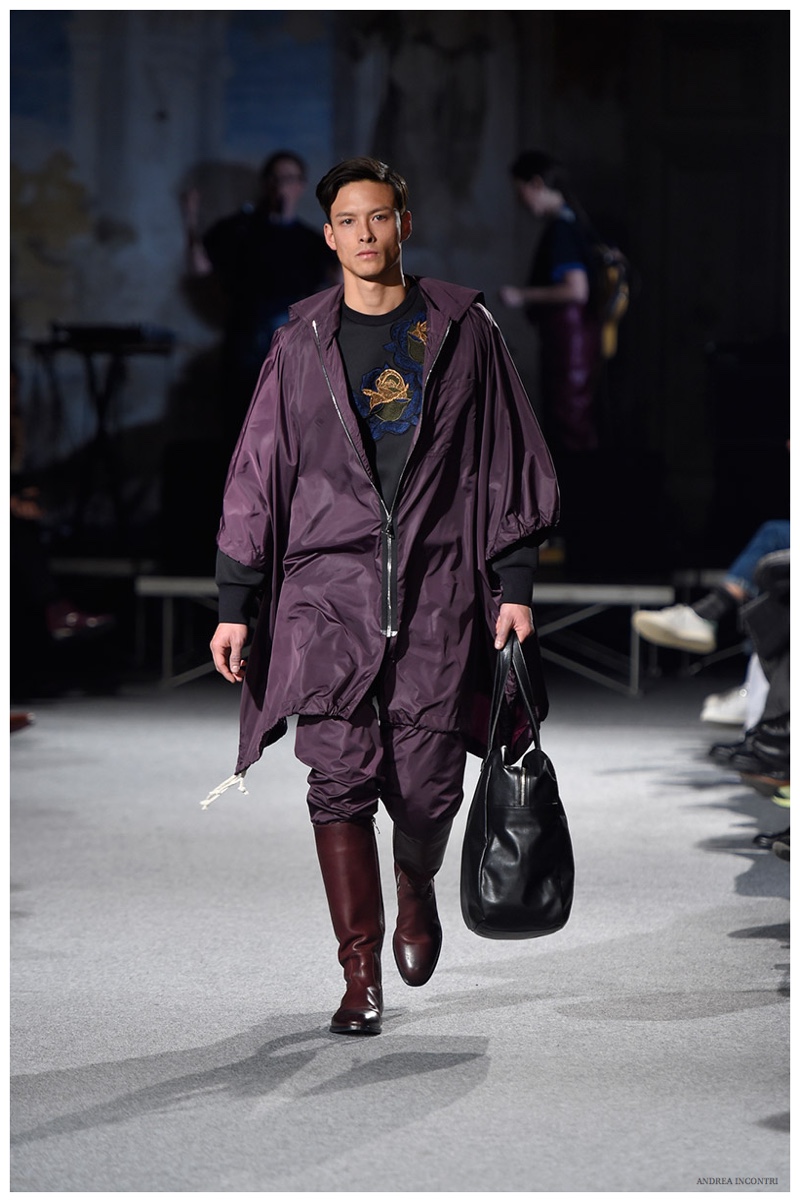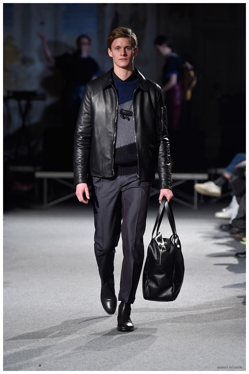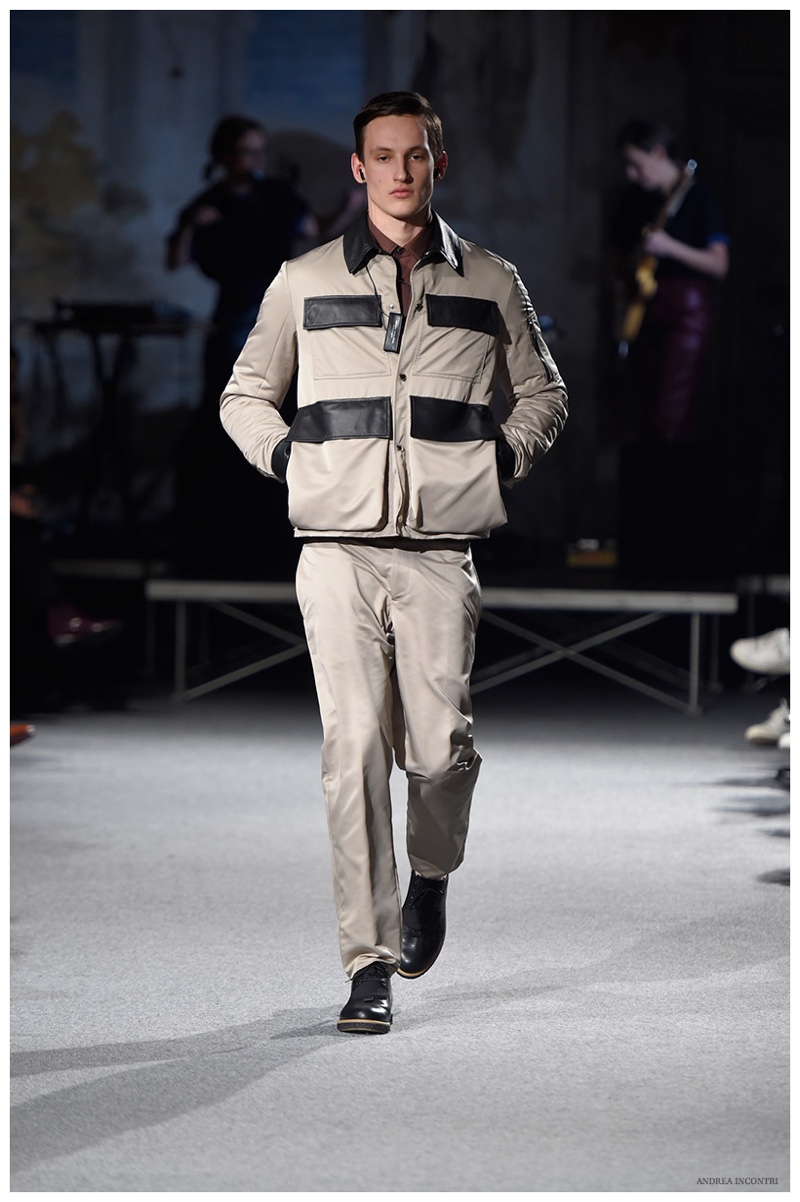 One of the latest brands to show during Pitti Uomo in Florence, Italy, Andrea Incontri unveiled a smart fall-winter 2015 collection. Combining the elegance of timeless tailoring with a modern mix of separates for the man of style on the go, the brand delivered one effortless ensemble after the next. Culminating in a lineup of nylon ponchos, Andrea Incontri’s fall collection relied on wearable fashions for the present. Denim jackets and coats appeared alongside a contemporary bomber jacket offering, while simple shirts and knitwear complemented slim-cut, technical pants that brought the season’s looks together.