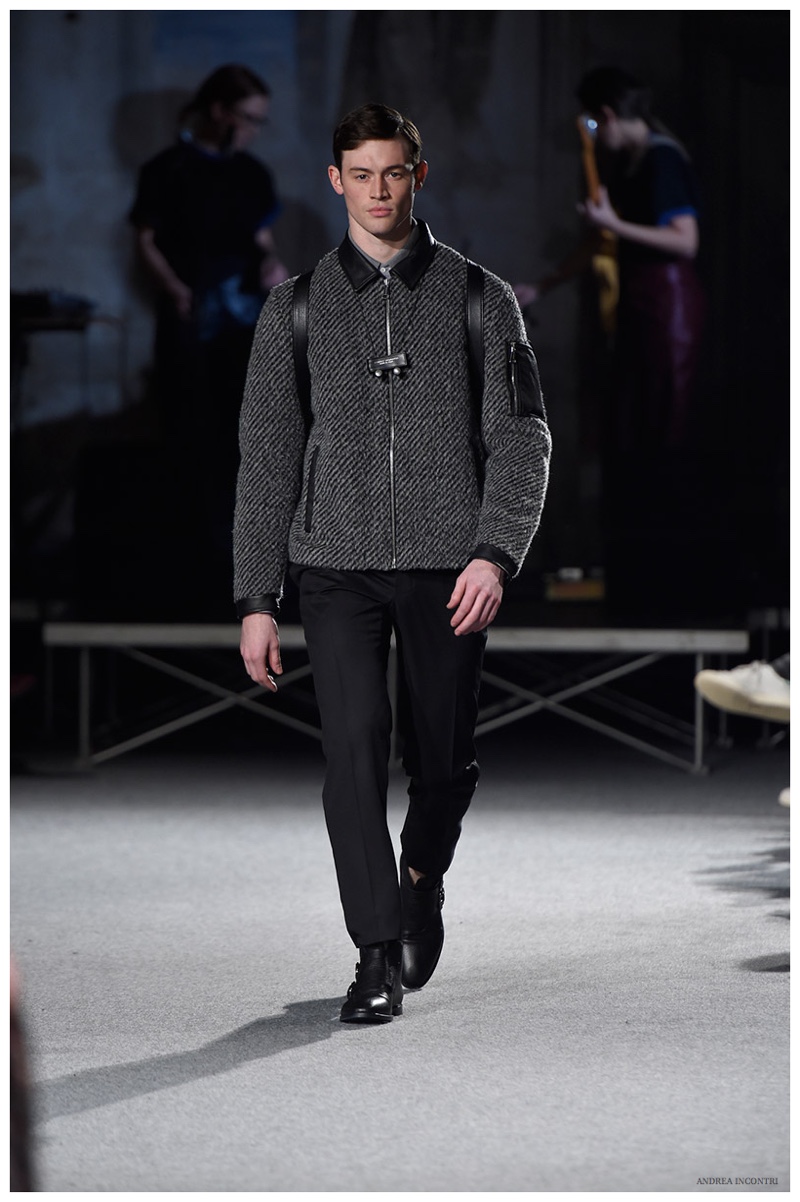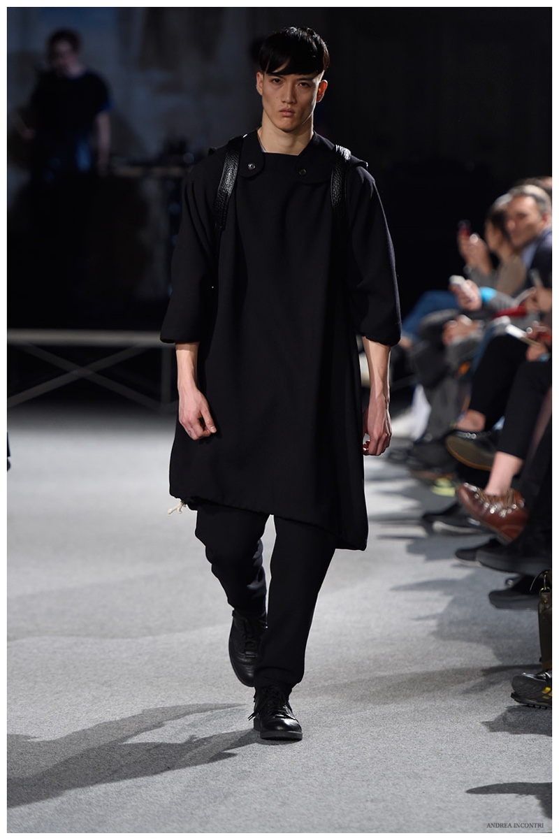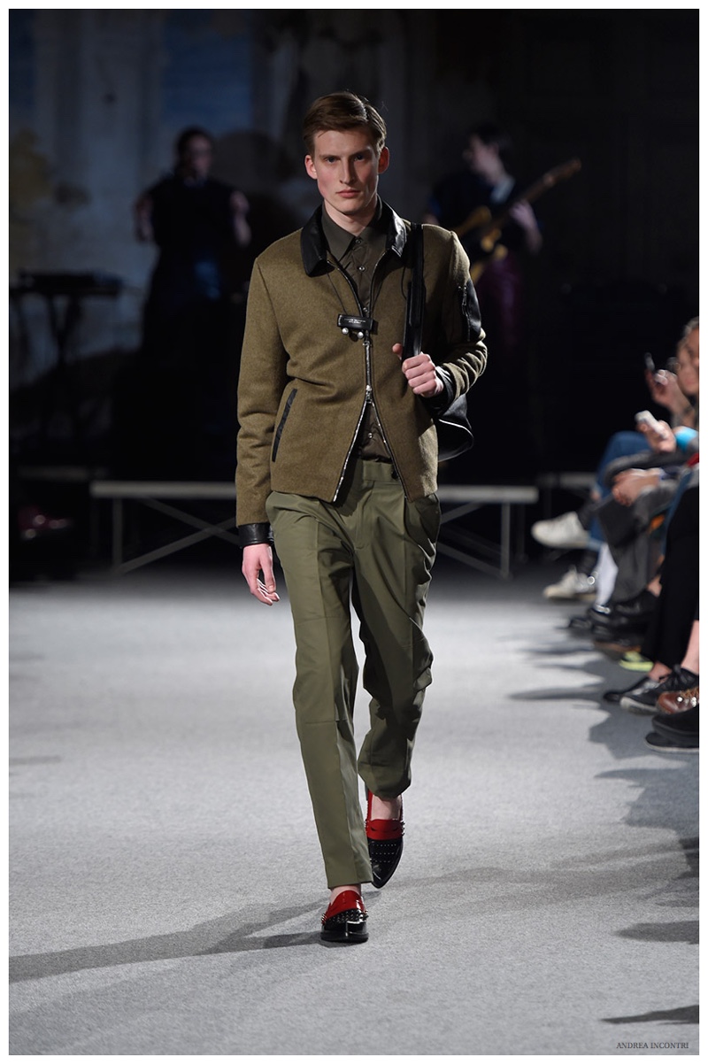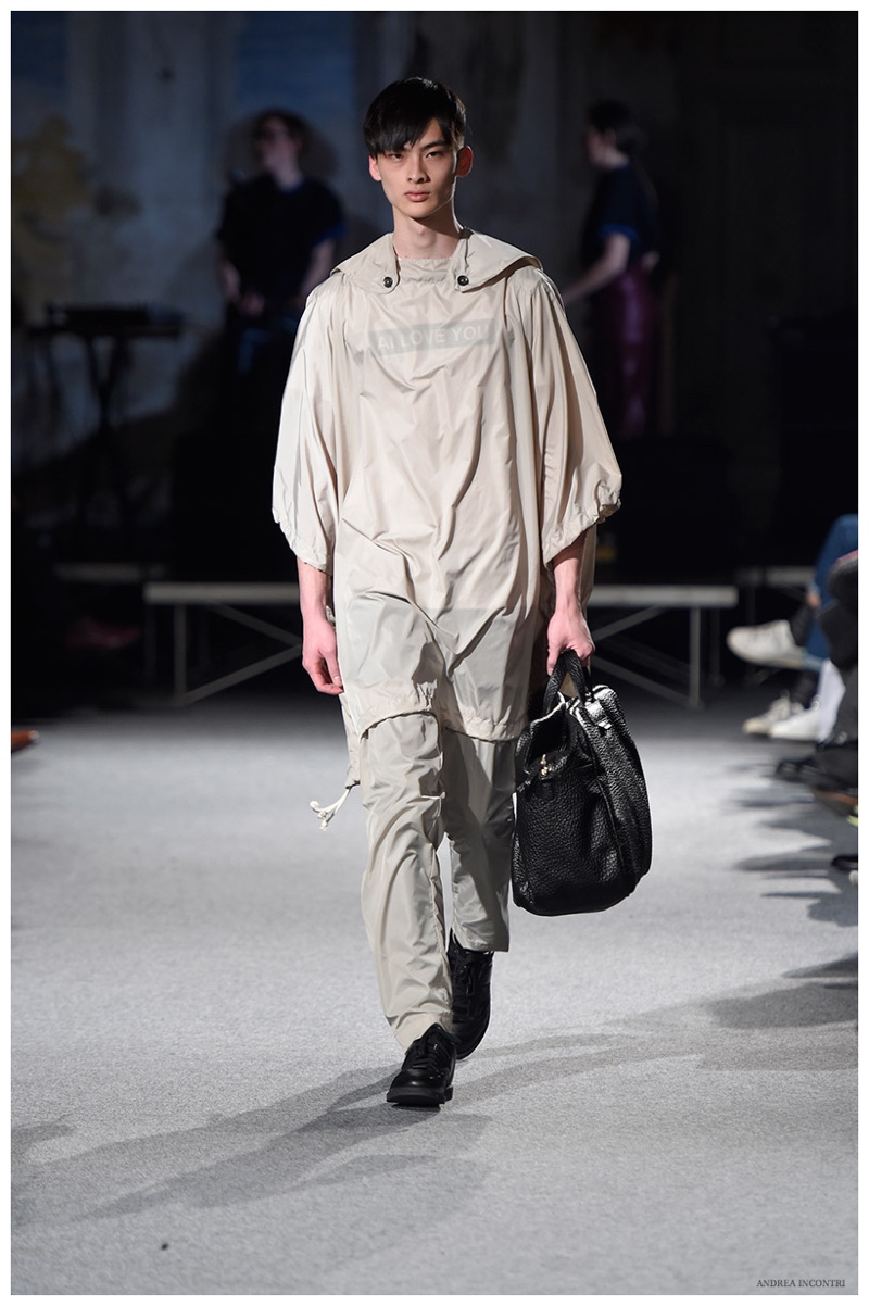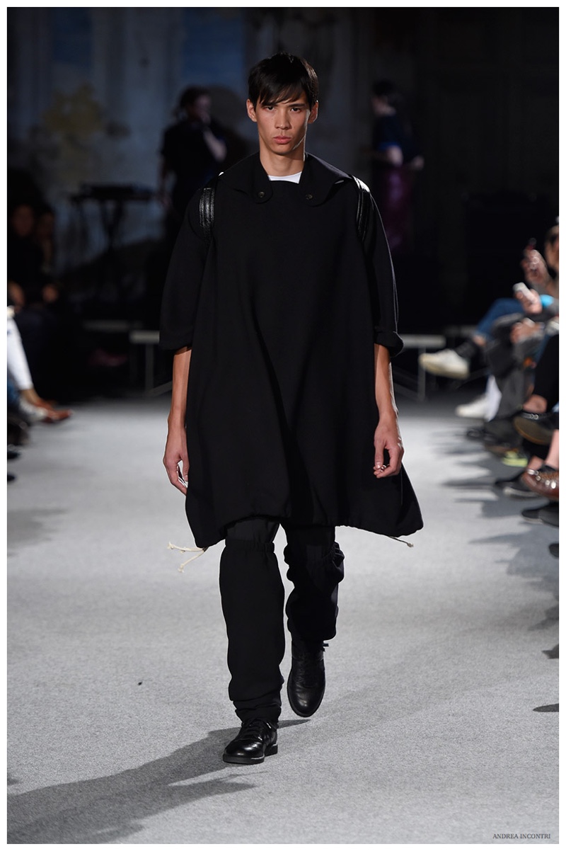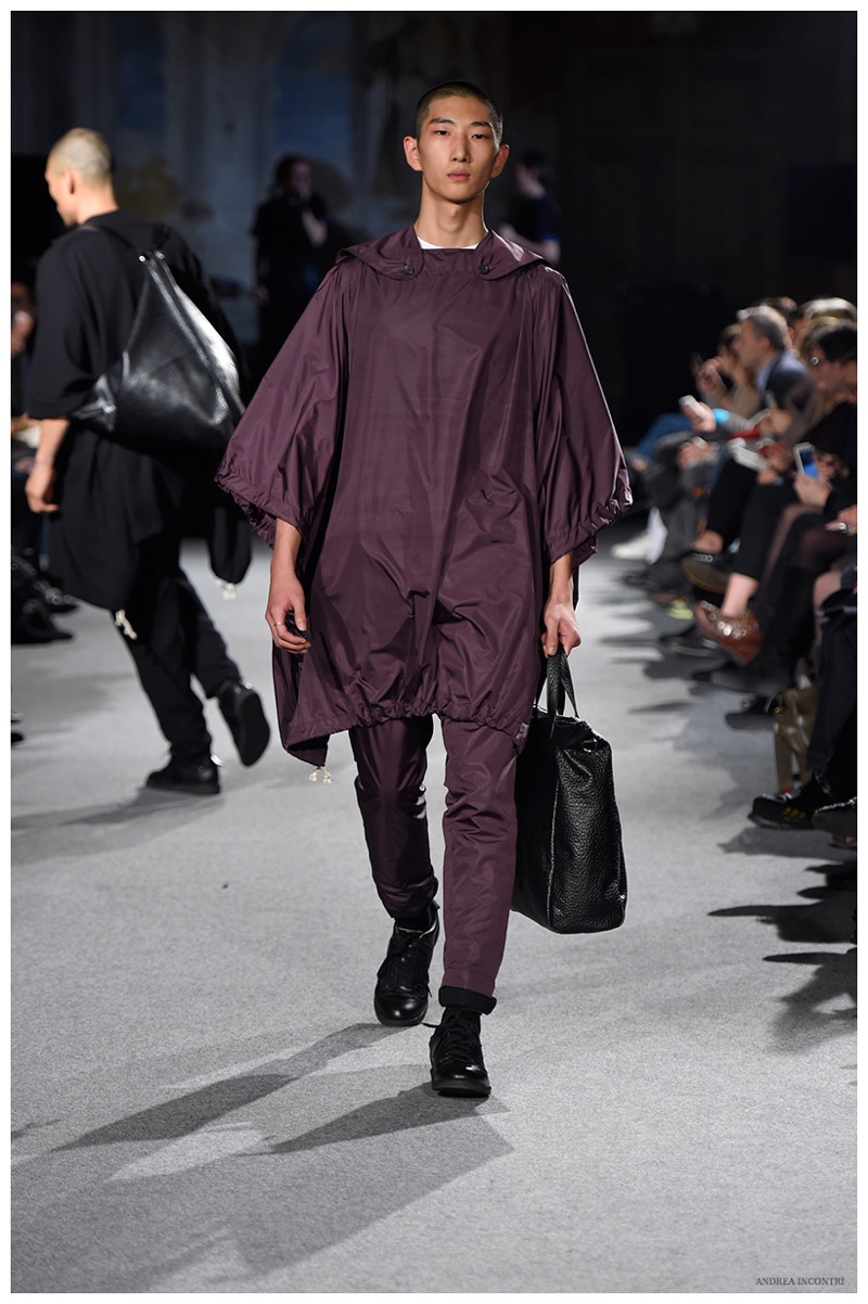 One of the latest brands to show during Pitti Uomo in Florence, Italy, Andrea Incontri unveiled a smart fall-winter 2015 collection. Combining the elegance of timeless tailoring with a modern mix of separates for the man of style on the go, the brand delivered one effortless ensemble after the next. Culminating in a lineup of nylon ponchos, Andrea Incontri’s fall collection relied on wearable fashions for the present. Denim jackets and coats appeared alongside a contemporary bomber jacket offering, while simple shirts and knitwear complemented slim-cut, technical pants that brought the season’s looks together.