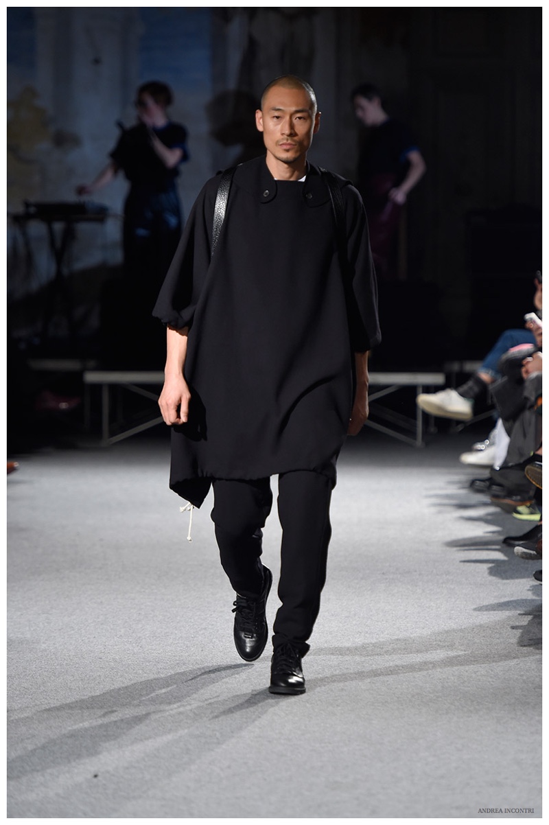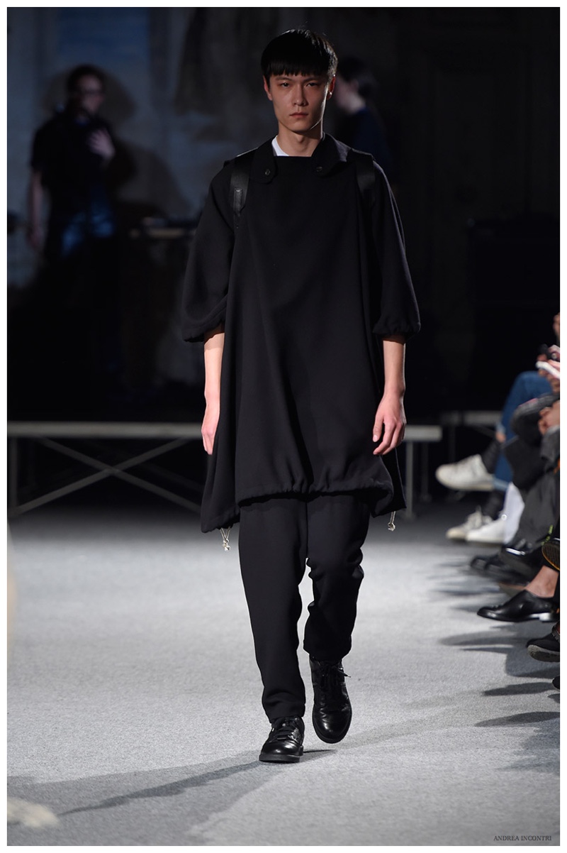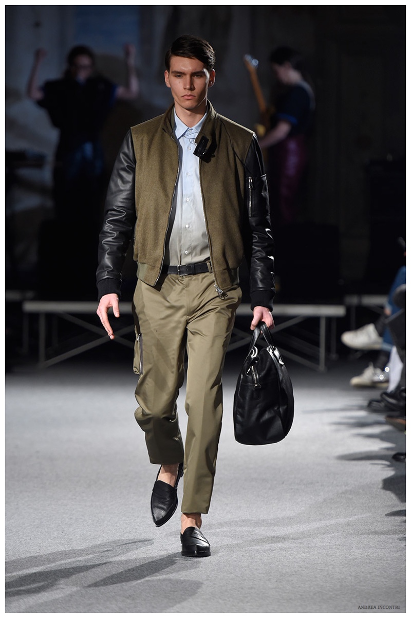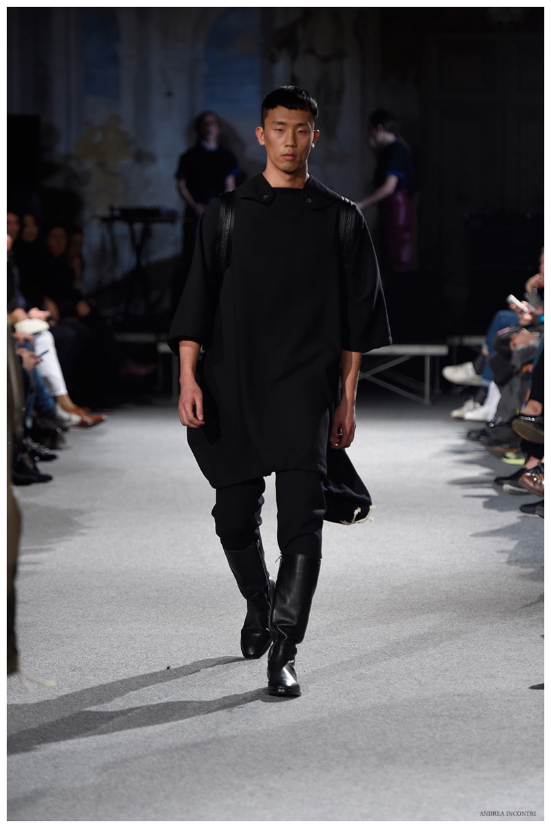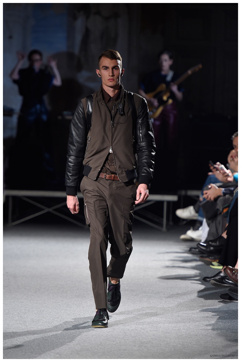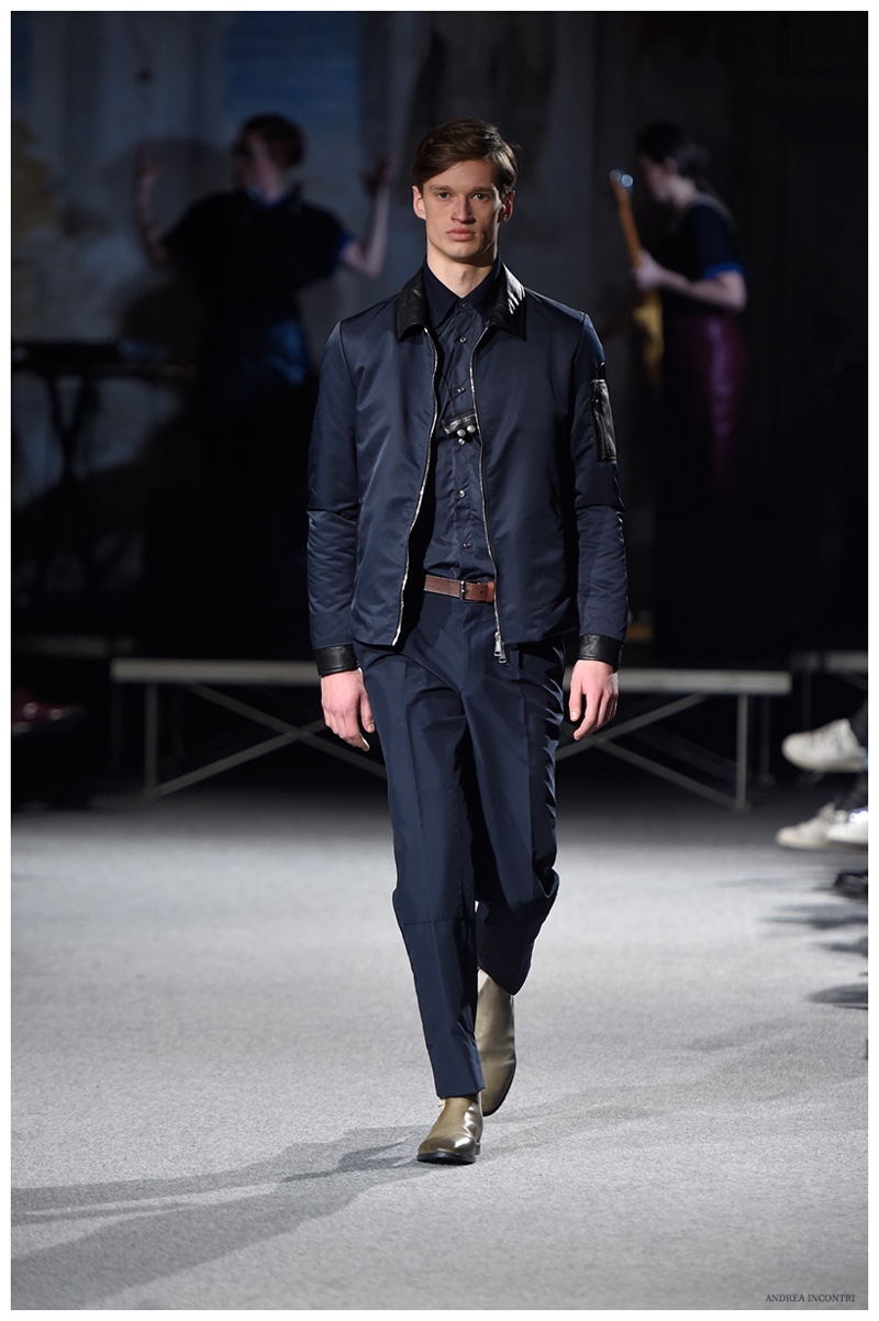 One of the latest brands to show during Pitti Uomo in Florence, Italy, Andrea Incontri unveiled a smart fall-winter 2015 collection. Combining the elegance of timeless tailoring with a modern mix of separates for the man of style on the go, the brand delivered one effortless ensemble after the next. Culminating in a lineup of nylon ponchos, Andrea Incontri’s fall collection relied on wearable fashions for the present. Denim jackets and coats appeared alongside a contemporary bomber jacket offering, while simple shirts and knitwear complemented slim-cut, technical pants that brought the season’s looks together.