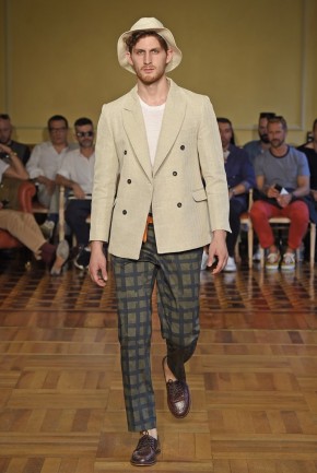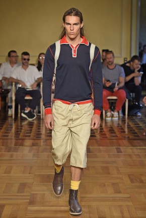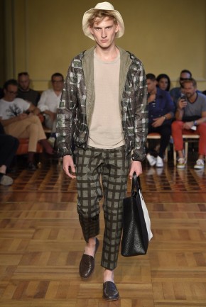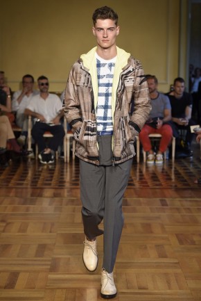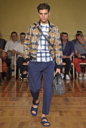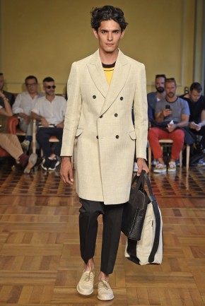 Andrea Incontri Spring/Summer 2015–Designer Andrea Incontri had travel on the mind as he approached his spring/summer 2015 collection. Designing for the style explorer, Incontri created separates that can be mixed and matched for effortless everyday style. What this meant for the collection was a myriad of colors, prints and blocking. Contrast worked in Incontri’s favor, whether looking at colors or the types of pieces put together. Knit twinsets, bomber jackets, double-breasted coats, slim pleated trousers and sleeveless jackets all made the accessible cut.