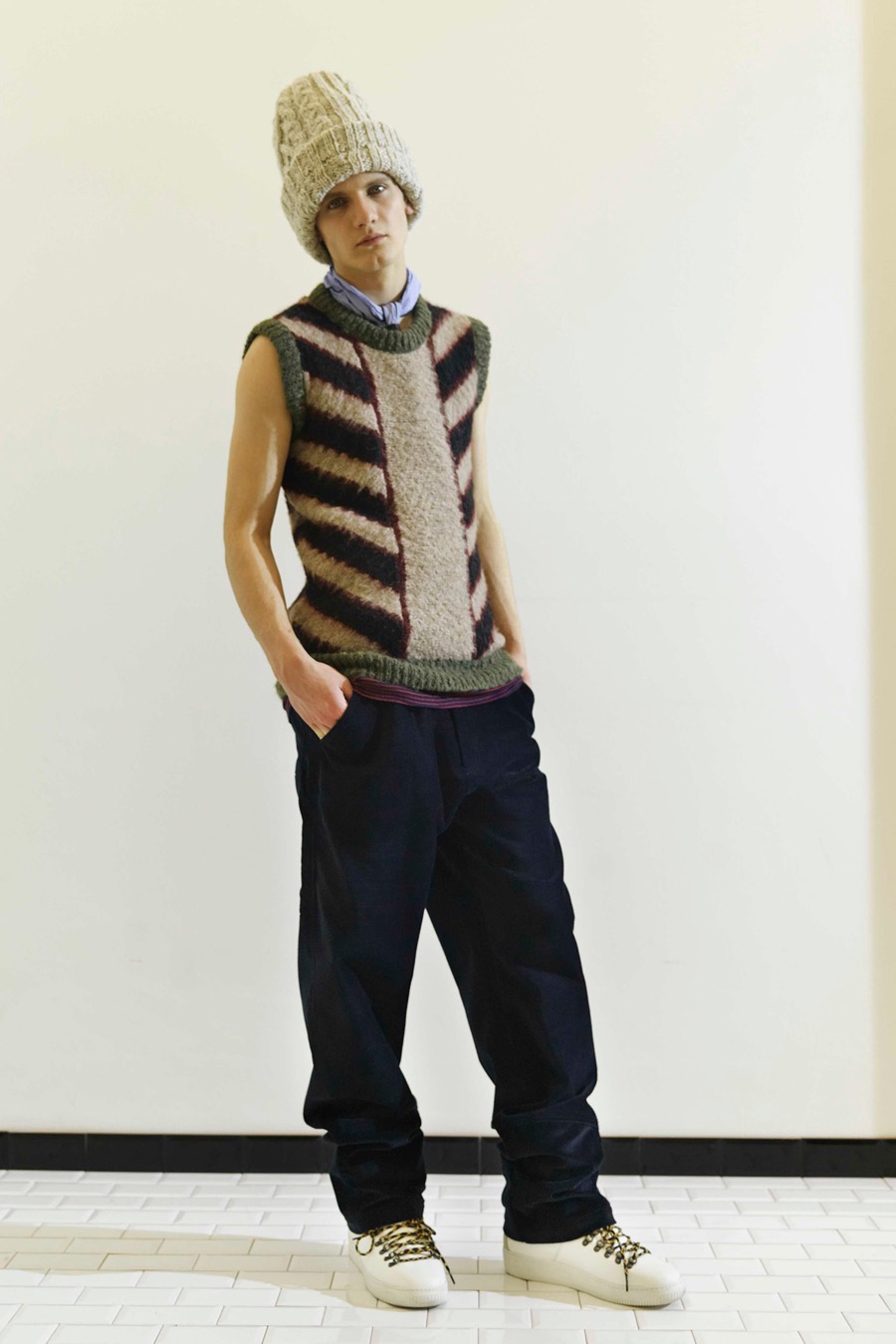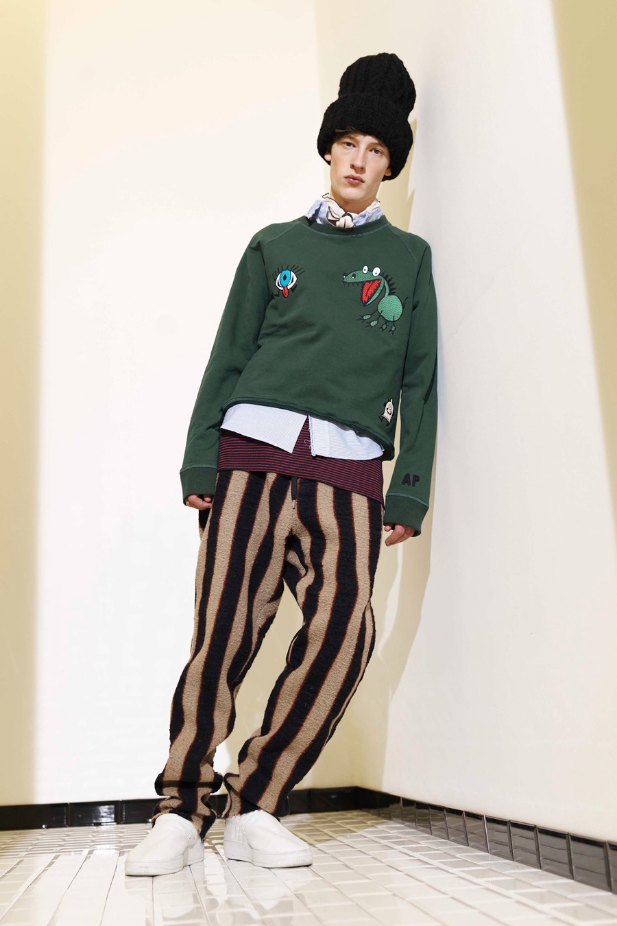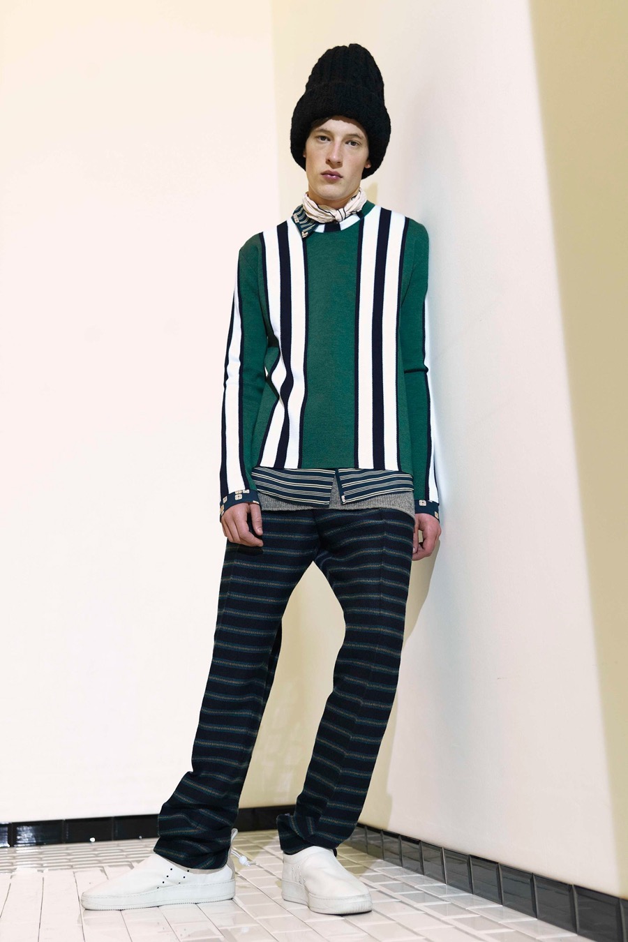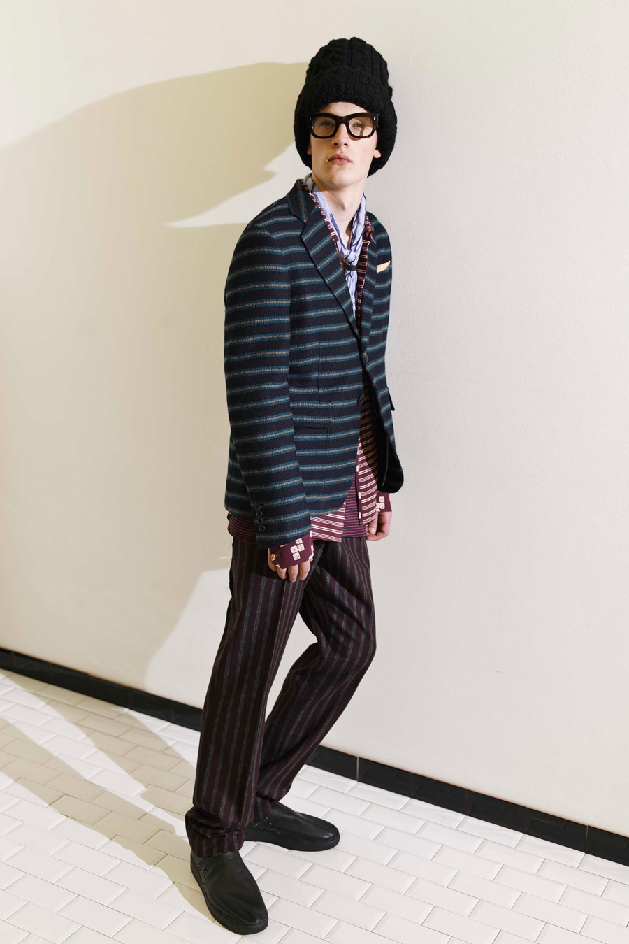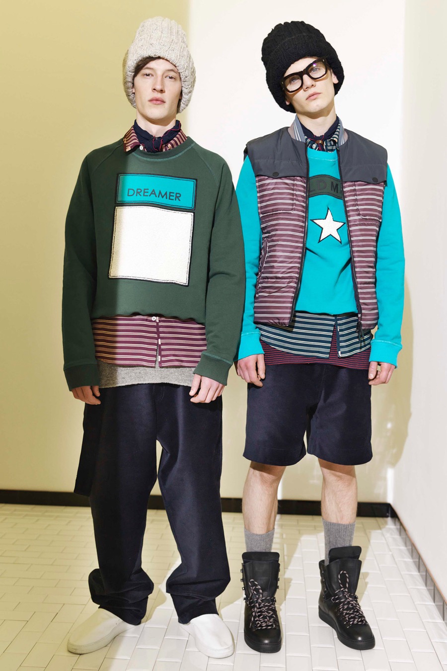 Bold prints and relaxed silhouettes are on the style agenda for Andrea Pompilio’s fall-winter 2016 collection. Pompilio injects the season with a youthful fun, mixing patterns and strong colors. Layering a generous number of covetable pieces, the designer’s wardrobe includes baggy denim jeans, striped trousers, oversized parkas, elongated jumpers and graphic overcoats. In addition to playful splashes of stripes and a renewed, trendy focus on plaid, Pompilio has a military moment. The officer’s coat and a double-breasted jacket contribute to the collection’s navy standouts.