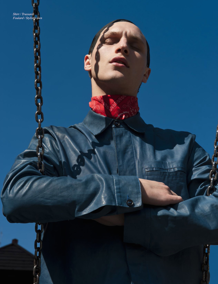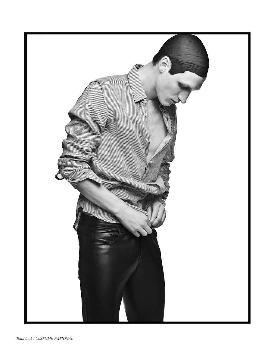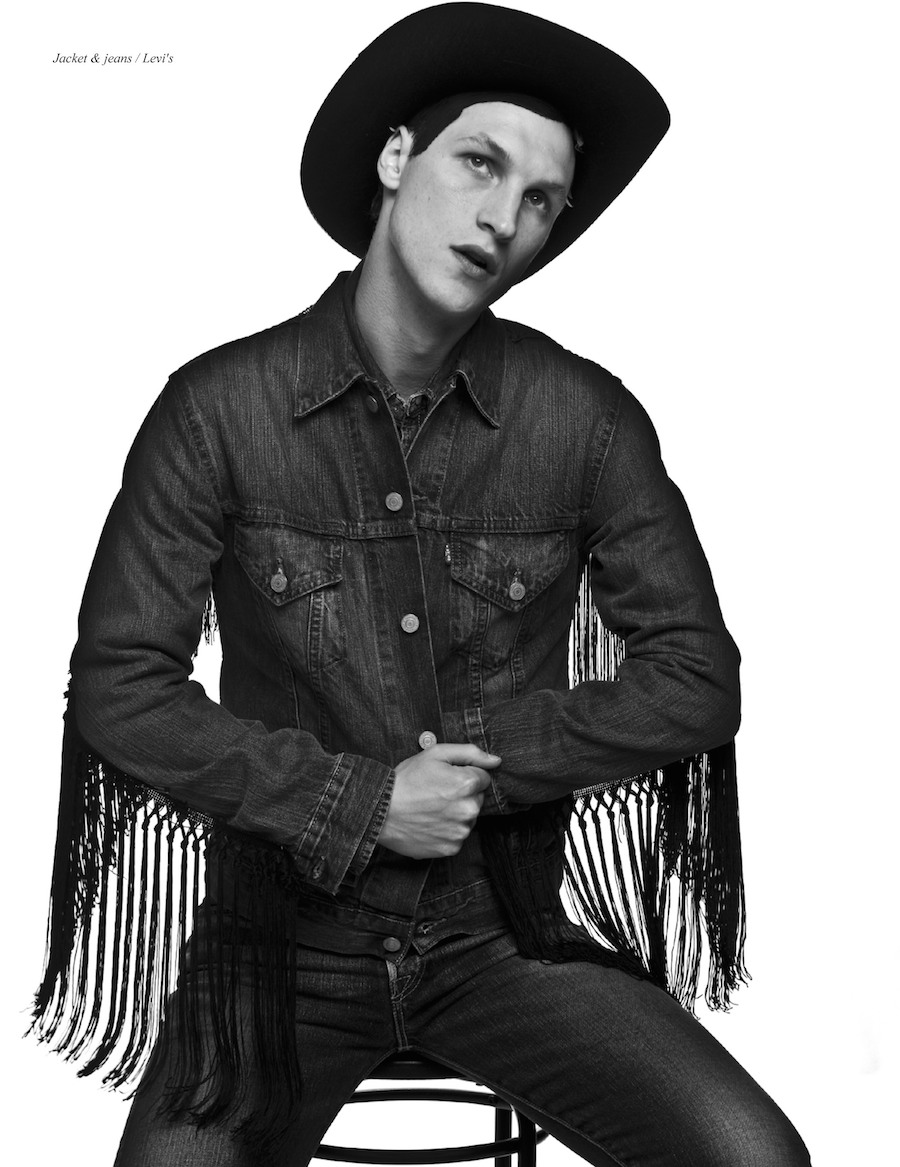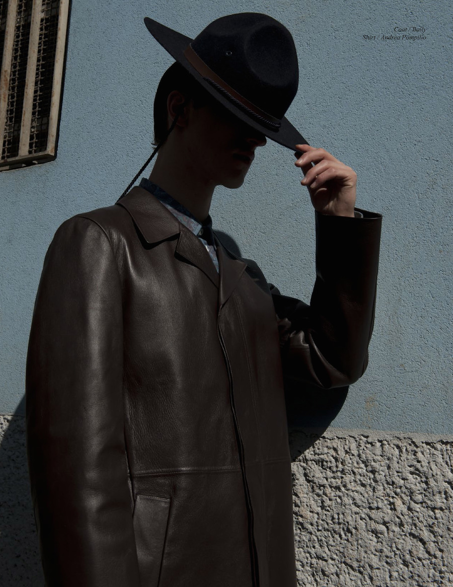 Hat Required–Model Andreas Brunnhage graces the pages of Schön! magazine with a story lensed by Ryan Jerome. Exploring the always appealing figure of the cowboy, Andreas is styled by Sofia Hernandez Bombaci (HM Battaglia) in a wardrobe where classic garments from the ideal cowboy uniform, like jeans, boots and denim shirts, are matched with sartorial suits, bold black leather trousers and printed ensembles, while a large selection of cowboy hats in different colors obviously complete Andreas’ style. / Grooming by Pawel Solis.