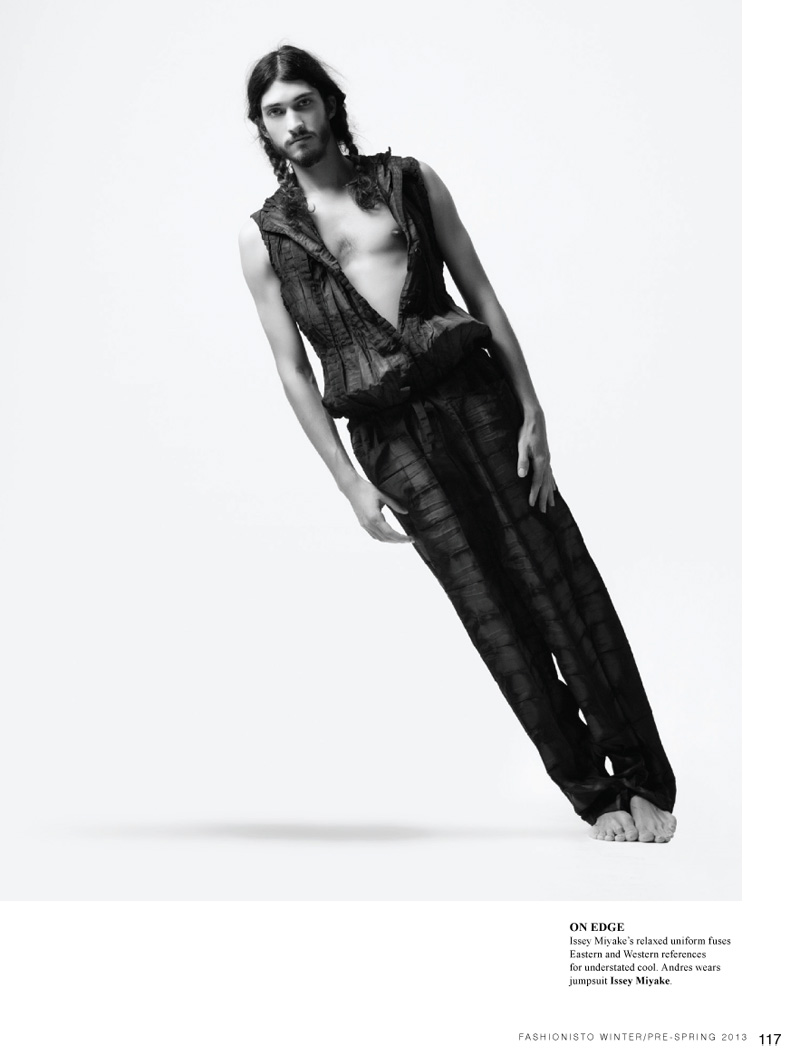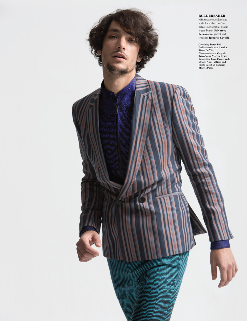 Spring Uniform–Bananas models Andres Risso and Lucho Jacob are brought together for the cover story of Fashionisto #6, lensed by Paolo Simi. Gearing up for spring in quirky uniform numbers, the pair are styled by Demetrio Baffa Trasci Amalfitani in the likes of Prada, Roberto Cavalli and Calvin Klein Collection.