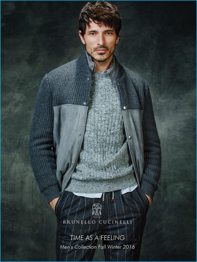 Andres Velencoso connects with Brunello Cucinelli for its fall-winter 2016 outing.