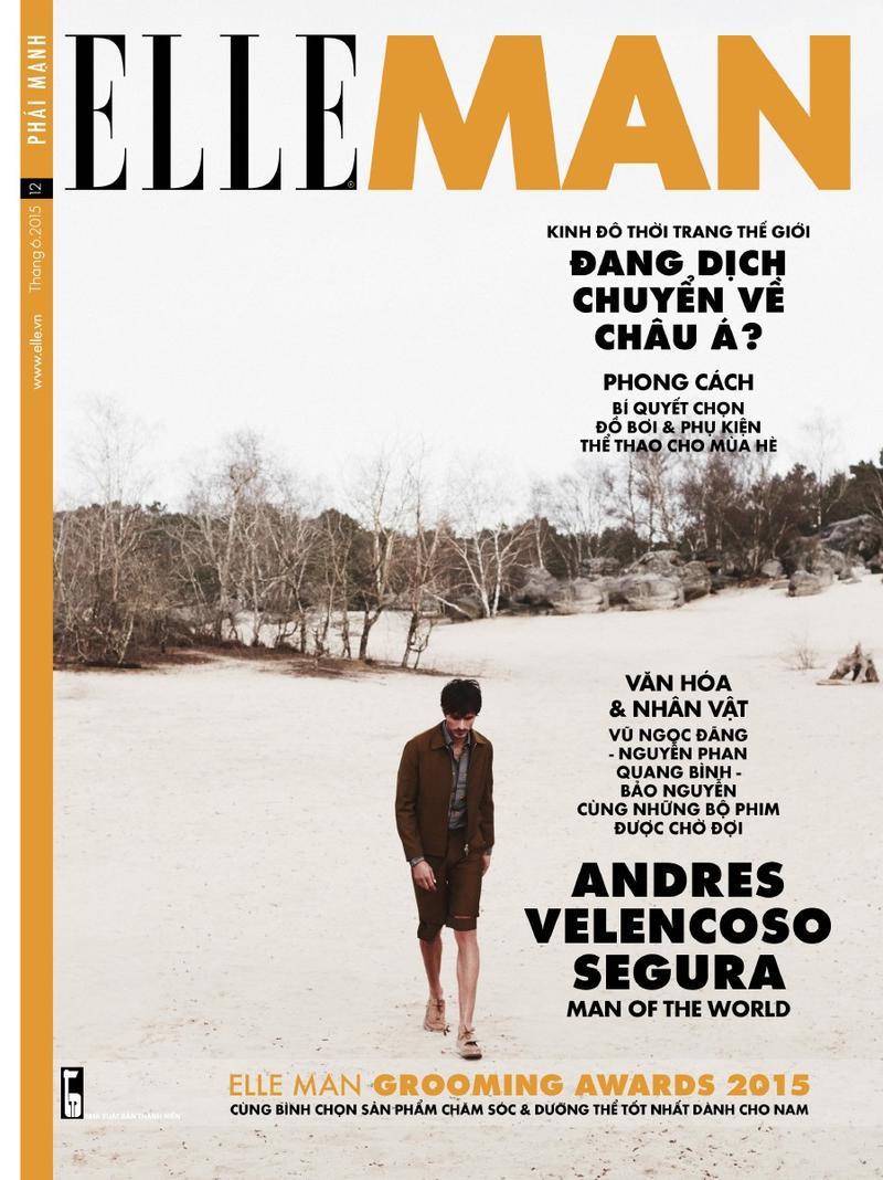 Spanish model Andres Velencoso Segura lands two covers for the July 2015 issue of Elle Man Vietnam. A Man of the World, Andres is photographed by Jumbo Tsui, wearing contemporary fashions from the likes of Dior Homme, styled by Shuo Yuan Hasegawa for the outdoors photo shoot.