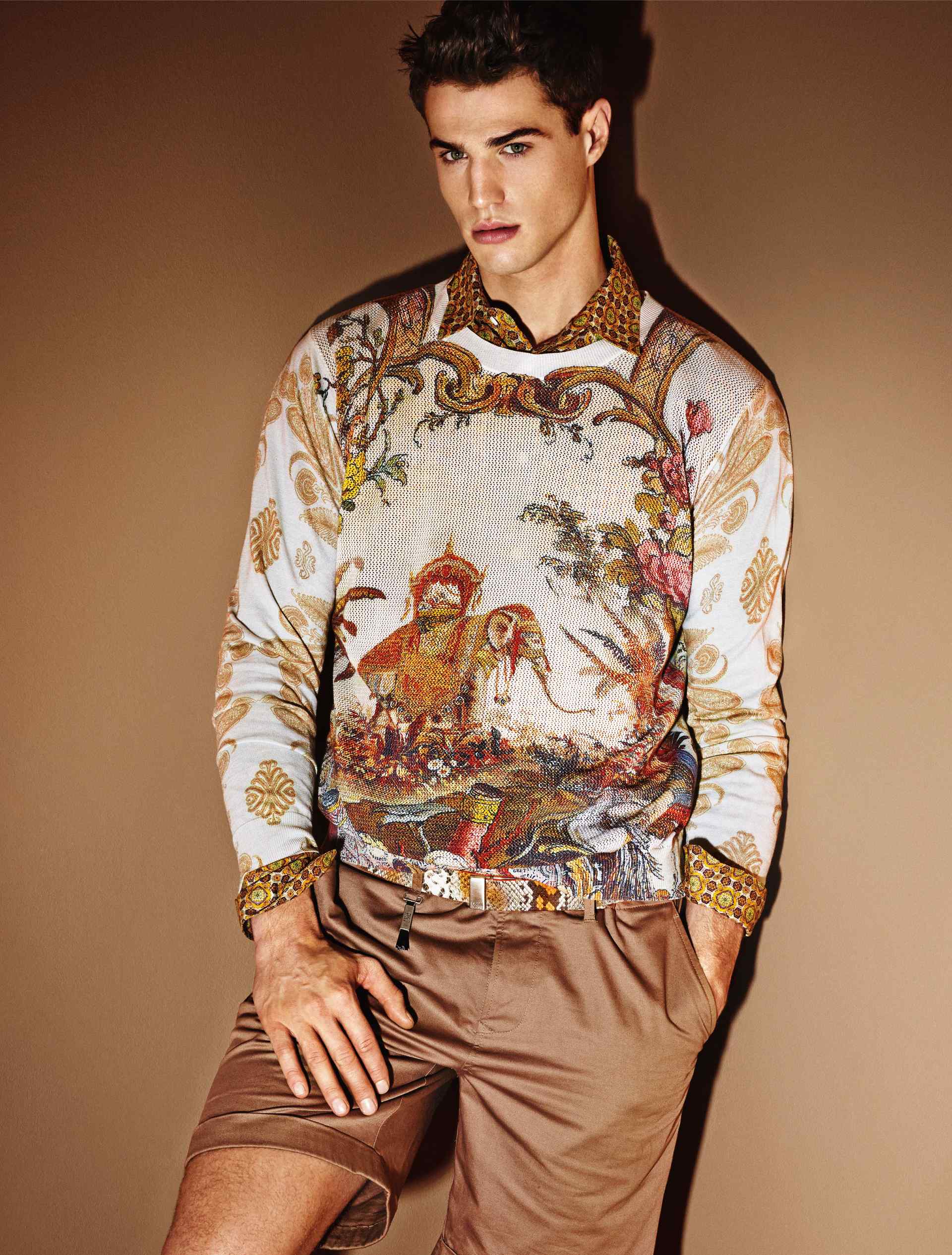 Colorama–WhyNot model Andy Walters is ready to face the upcoming spring season with a massive dose of bright colors, as seen by the newly released images of Class Roberto Cavalli spring/summer 2014 catalogue. Following the spirit of Cavalli’s signature sense of style, the spring collection is a tribute to vibrant colors, graphic patterns and textured numbers. Such a vivid palette of tones is perfectly balanced with the use of clean and sleek lines, that define a young and playful wardrobe, with a hint of Italian tailoring tradition. Switching from the casual washed jeans to the more glamorous eveningwear numbers, the brand’s latest offering is the perfect blend between elegance and eclecticism.