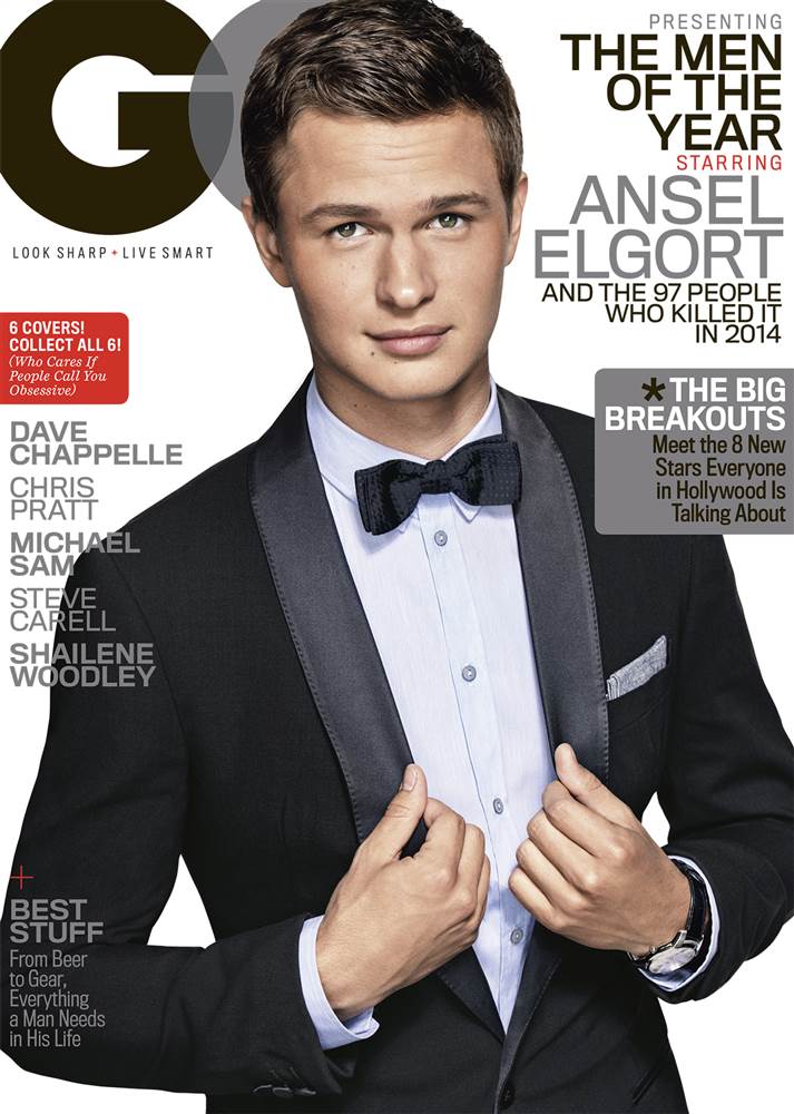 Ansel Elgort Covers GQ-Following his moody HERO cover shot by Saint Laurent creative director Hedi Slimane, actor Ansel Elgort is in bright spirits for the cover of GQ’s ‘Men of the Year’ issue. Sporting a tailored, black tuxedo, he joins actor Chris Pratt with the honor of covering GQ’s December 2014 edition. On a more casual note, Elgort recently appeared in American Vogue, playing muse to Orley fashion designers Samantha Florence, Matthew and Alex Orley.