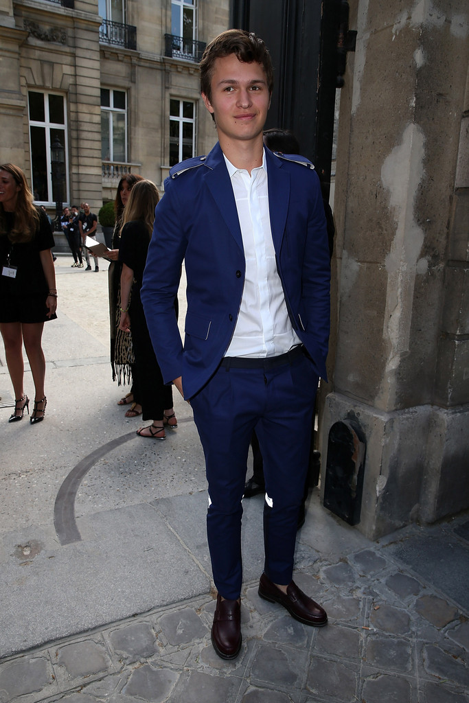 Elgort in Valentino–A front row guest of Valentino for its spring/summer 2015 show earlier this week, ‘Fault in Our Stars’ actor Ansel Elgort was all smiles. For the special event, Elgort wore a blue suit with epaulet details from Valentino’s spring/summer 2014 collection. Elgort also appears in this month’s edition of Interview magazine.