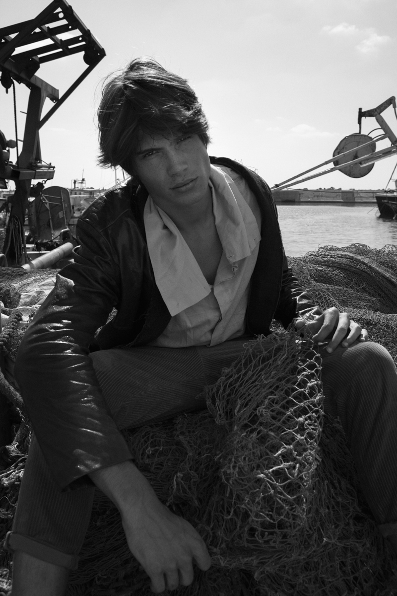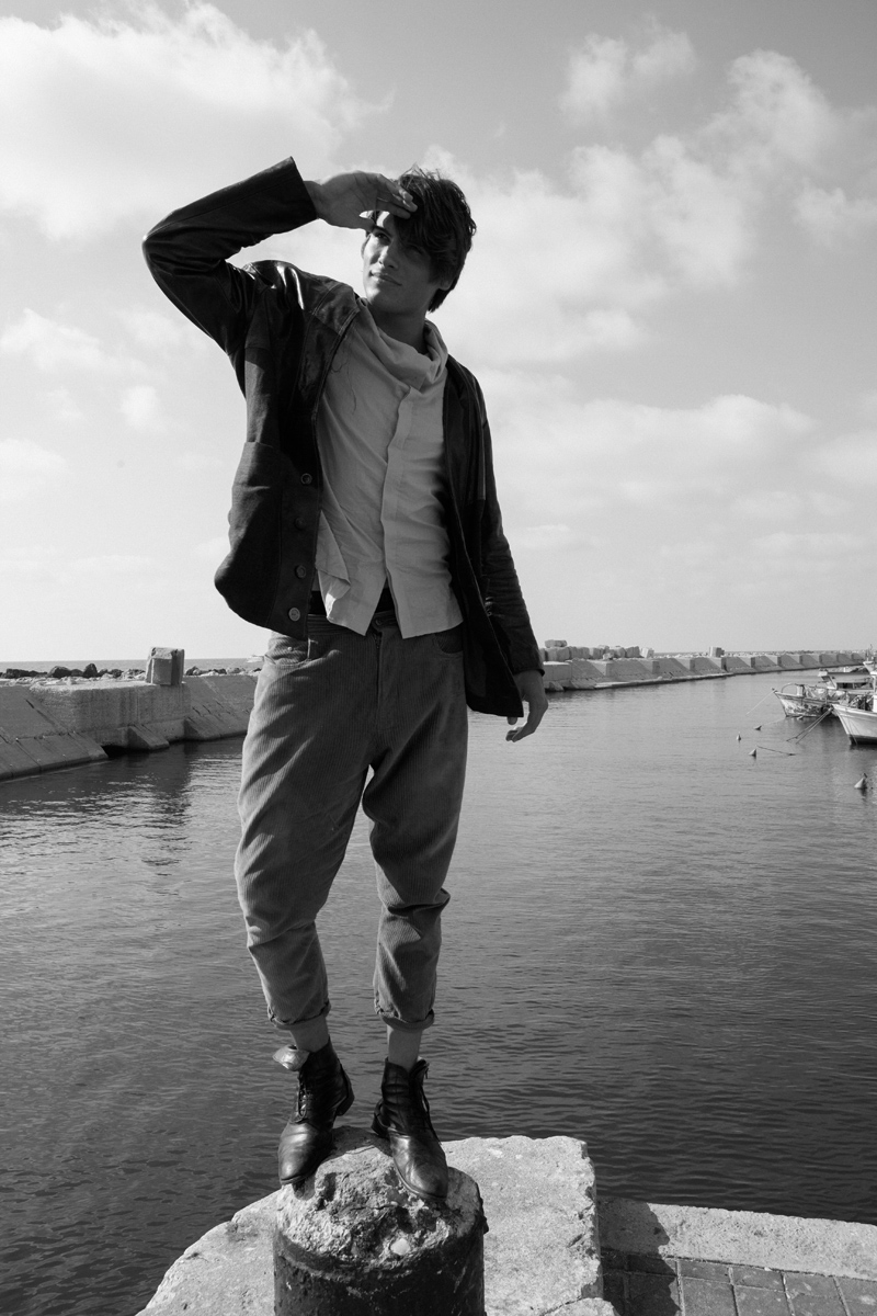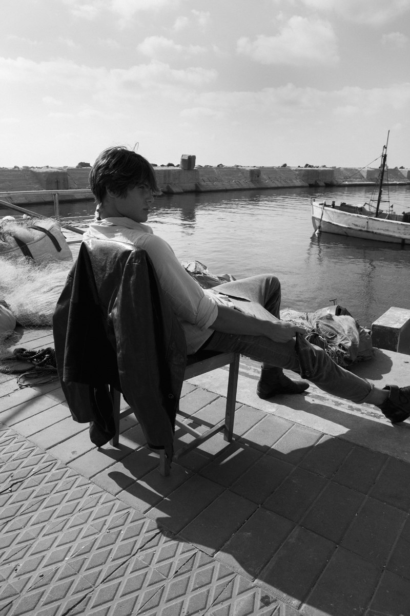 Portside–Model Anton Davidzon (Passion Management) belongs to the sea for the latest portrait series with photographer Florian Maas. Effortless and relaxed, Anton exudes a casual finesse against the beautiful port of Tel Aviv. With the styling expertise of Orit Stein, Anton soaks up the sun in soft silhouettes and utilitarian fabrics for a carefree summer wardrobe.