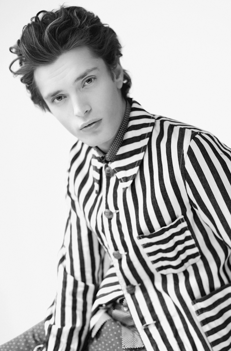 Shooting Blend–After spending some time together shooting a fashion editorial, photographer Anton Östlund and MIKAs model Blend S reunite once more for a portrait series. Styled by Max Erikson in deconstructed jackets, fluid trousers and striped numbers, Blend walks in a luminous white studio, wearing rounded acetate sunglasses with a retro-inspired design, protecting his eyes from the bright atmosphere that surrounds him.