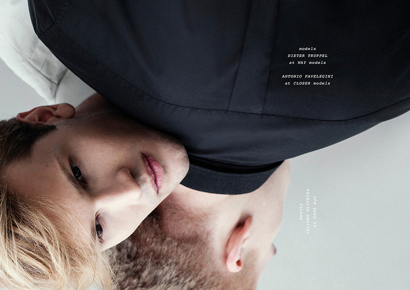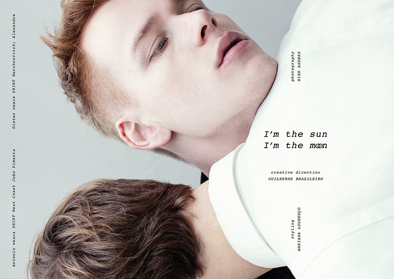 I’m the Sun, I’m the Moon–Creative director Guilherme Brasileiro and photographer Nino Andres come together for a story in ROMEU Mag. Shooting with stylist Mariana Lourenço, Andres captures models Antonio Pavelegini and Dieter Truppel. Set among the wild outdoors, the models are drawn to each other like the moon and sun as they sport local fashions with a certain ease. / Makeup by Juliane Oliveira (CAPAmgt).
