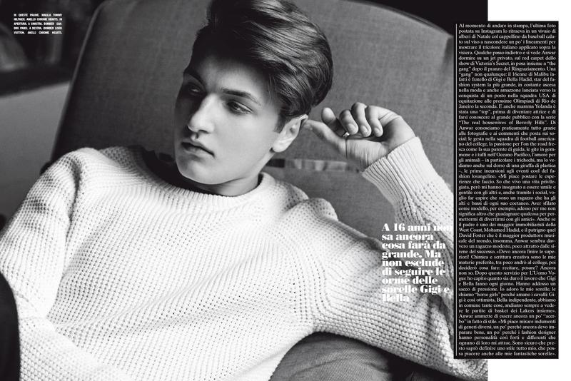 Gigi Hadid's brother Anwar steps into the role of model for the pages of L'Uomo Vogue.Pin