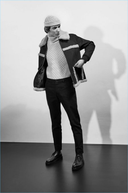 A.P.C. celebrates thirty years of fashion with its fall-winter 2017 collection. Designer Jean Touitou revisits menswear classics for the season. Photographer Collier Schorr captures A.P.C.’s new lookbook with a retro attitude. Here, chic lightweight knitwear comes together with quintessential corduroy pants, sleek turtlenecks, and denim. The outing also features the latest jackets from Louis Wong. Shearling dressed jackets contribute to the designer’s fall efforts.