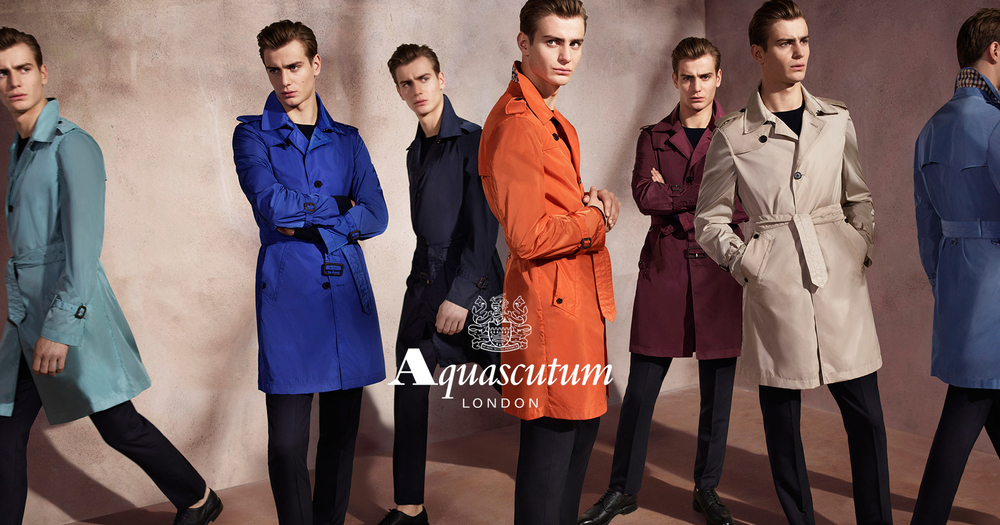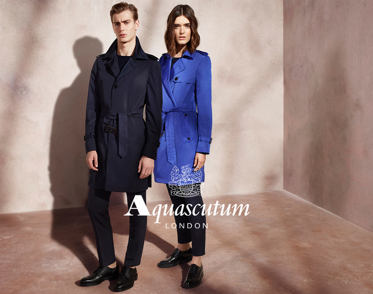 Aquascutum highlights its Voyager Packaway trench coat for its spring-summer 2016 campaign. The occasion reunites the British brand with model Ben Allen, who stars in the advertisement with Anouk Hagemeijer. Photographed by Ash Reynolds, Ben models Aquascutum’s classic trench coats, which have been revisited in a multitude of colors. Ranging from orange and blue to burgundy, the trench coats get their colors from tones inspired by the traditional color runs of heritage English mills.