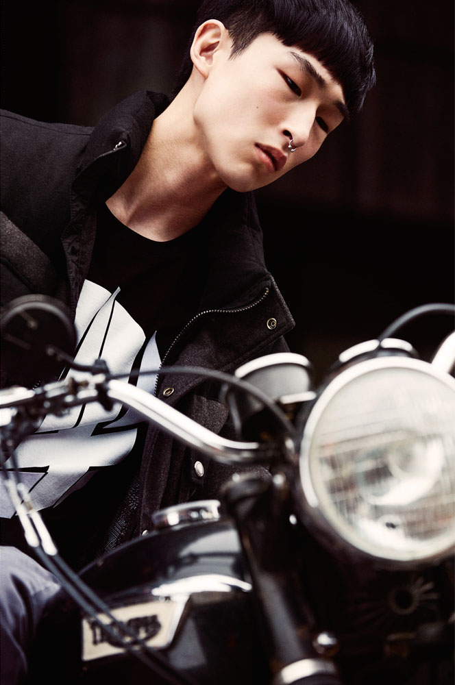 Armani Exchange embraces the change of seasons with the unveil of its winter 2015 advertising campaign. After starring in the brand’s fall outing, models Miles McMillan and Sang Woo Kim return. Featuring tight frames, the spotlight is put on essentials such as the leather jacket and choice winter accessories.