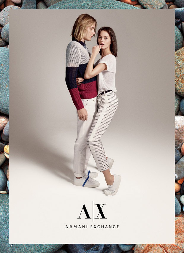 Armani Exchange enlists models Ton Heukels and Adonis Bosso to star in its summer 2015 campaign. Hitting the photo studio, the duo are photographed by Cass Bird. Embracing casual style for the outing, Ton and Adonis are outfitted by Heathermary Jackson, wearing lightweight knits, denim jeans, white pants and other summer staples. / Hair by Teddy Charles. Makeup by Frank B.