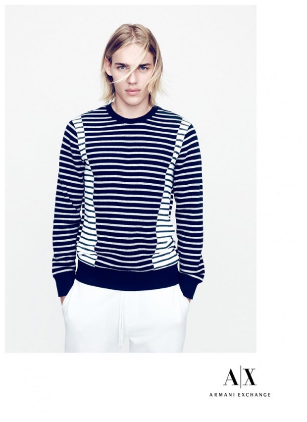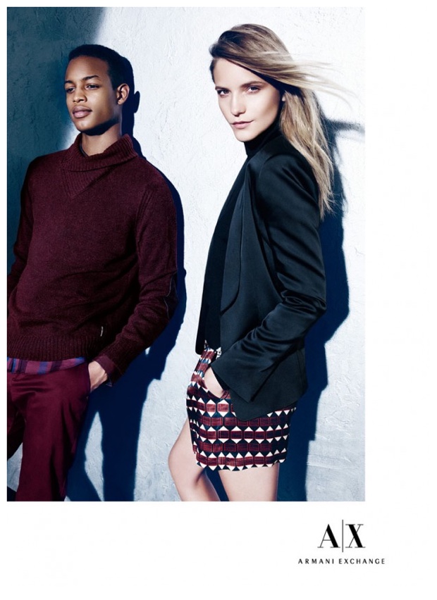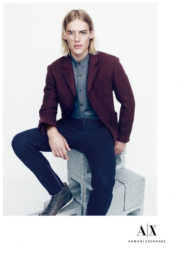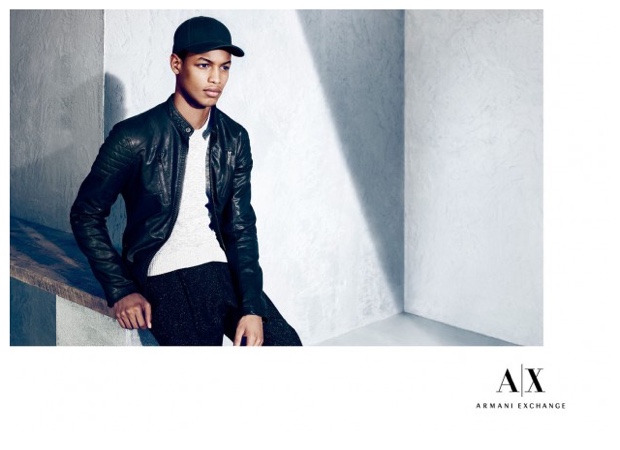 Armani Exchange Holiday 2014 Campaign-Armani Exchange commissions photographer Nagi Sakai (DeFacto Inc.) to shoot its holiday 2014 campaign, which features models Conrad Bromfield and Ton Heukels. Posing for serious photos, the pair models casual fashions that blend contemporary, slim silhouettes with a youthful, wearable style factor. From leather jackets and unstructured blazers to joggers, Conrad and Ton rock easy fashions styled by Katie Burnett (Atelier Management).