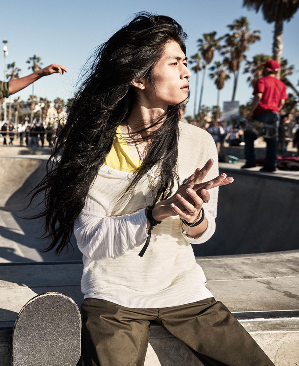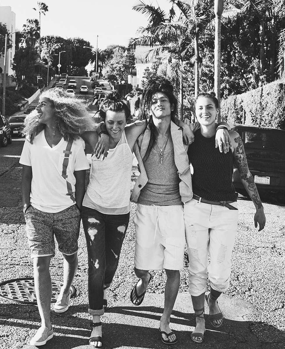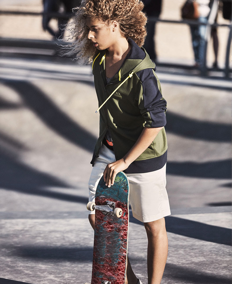 Armani Exchange dreams up a relaxed picture of youth for its summer 2016 collection. Models RJ King and Luke Worrall reunite with the brand after starring in its spring advertisements. This time around, the duo embrace simple fashions. RJ and Luke are picture in lightweight jackets, relaxed tees and patterned shorts. Meanwhile, Armani Exchange channels a skater cool for its new lookbook. Maro Chon and Olan Prenatt are enlisted for a fun day out. Skateboarding and enjoying the beach, the pair rock sporty summer styles. Hero pieces include a mesh bomber jacket and slouchy tops.