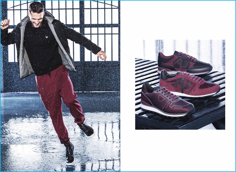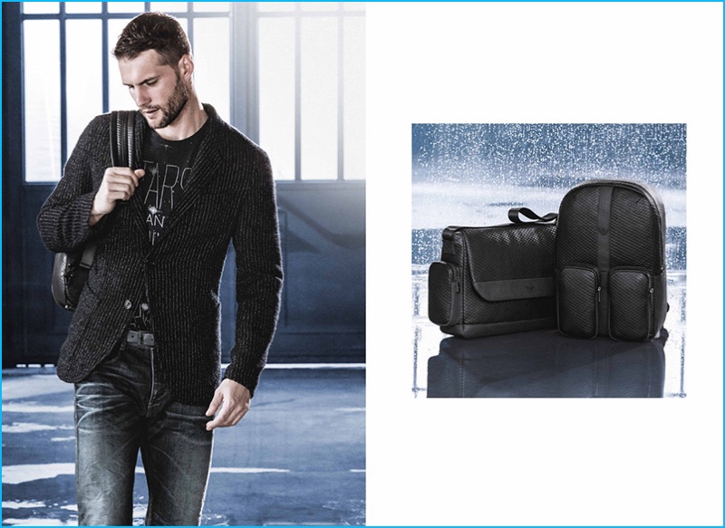When it comes to Giorgio Armani’s various lines, you can always count on Armani Jeans for an active approach to men’s style and fall-winter 2016 is no different. Embracing a dark color palette with pops of rich burgundy, models Tomas Skoloudik and Fabio Mancini come together for this season’s catalogue. Windbreakers, bomber jackets and hooded zip-ups pack a sporty punch, while leather outerwear and crewneck sweaters add a polished touch to Armani Jeans’ latest lineup. Not to be missed, distressed denim is combined with leather sneakers and nylon bags.