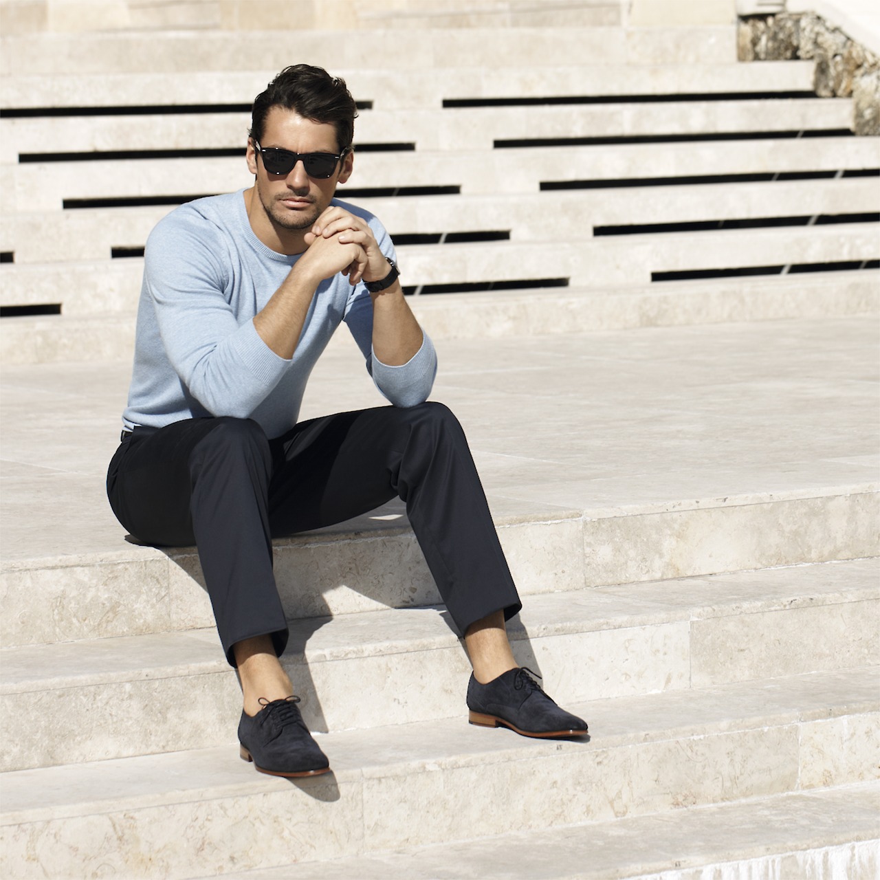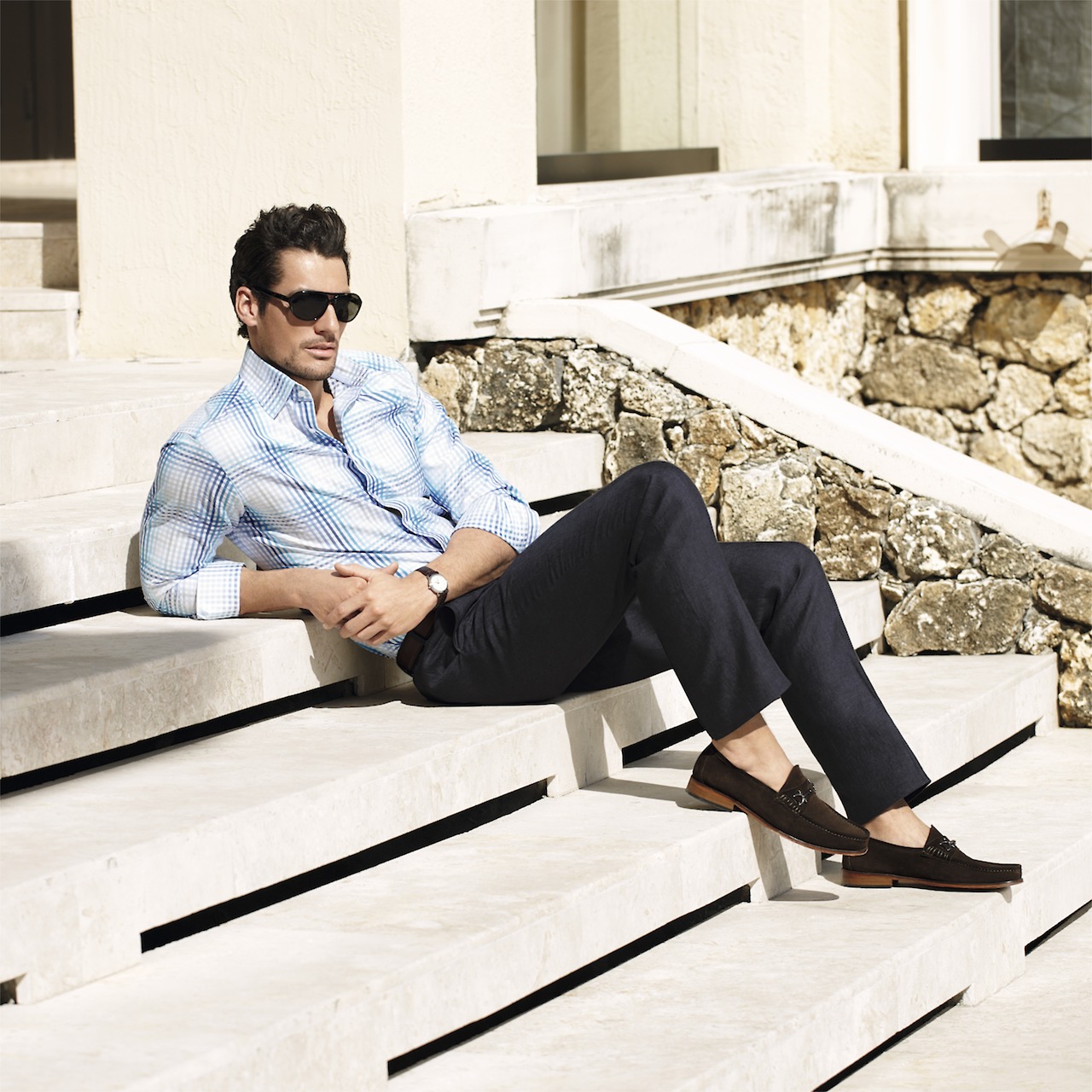 One of a Kind–After delighting us with a video preview of its spring/summer 2013 campaign, featuring once more leading model David Gandy, British label Marks & Spencer releases the print advertisements, captured by the lens of Arnaldo Anaya-Lucca. Heading to the city of Miami, Gandy reunites with the photographer to shoot the advertisements of the brand’s Collezione line, which is inspired by Italian sartorial elegance. Outfitted by David Nolan in soft knitwear, impeccable two-piece suits and classic trousers, the Select model proves once more his innate gentleman attitude, wearing the brand’s spring designs with a charming appeal. / Art direction by Kate Goode. Grooming by Larry King.