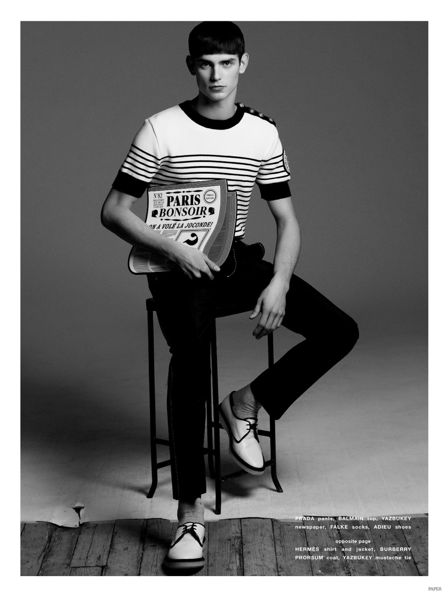 After an equestrian outing for Massimo Dutti, we catch up with French model Arthur Gosse in the pages of Paper magazine. Photographed by Paul Morel, Arthur embraces an eccentric persona as he delivers charming images, clad in spring fashions. Styled by Adele Cany, Arthur wears seasonal must-haves from labels such as Balmain, Prada and Dsquared2. / Hair by Mike Désir. Makeup by Alisonn Fetouaki. Post production by Julien Dauvillier.
