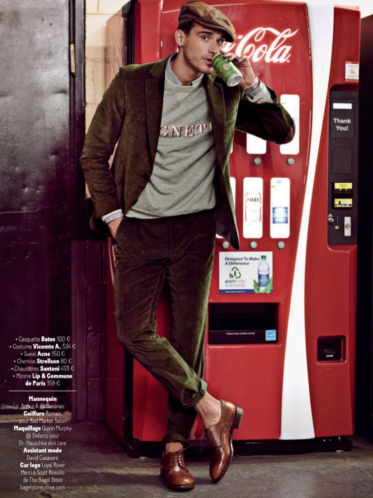 See You in Brooklyn!–Photographed by Arnaldo Anaya-Lucca for the September issue of French GQ, Bananas model Arthur Kulkov is ready to hit the streets of Brooklyn with an eclectic and multifaceted wardrobe, assembled by Jacqueline De Cossette. Mixing the classic preppy aesthetic with rustic inspired patterns and fabrics, and unveiling an inclination to customize his wardrobe, creating a unique and fashionable array of looks, Arthur easily wears tailored suits with sporty sneakers, combines camouflage prints with perfectly constructed blazers, and never forgets to embrace an appealing sense of style. / Styling assistance by David Casavant. Hair by Romain. Makeup by Quinn Murphy.