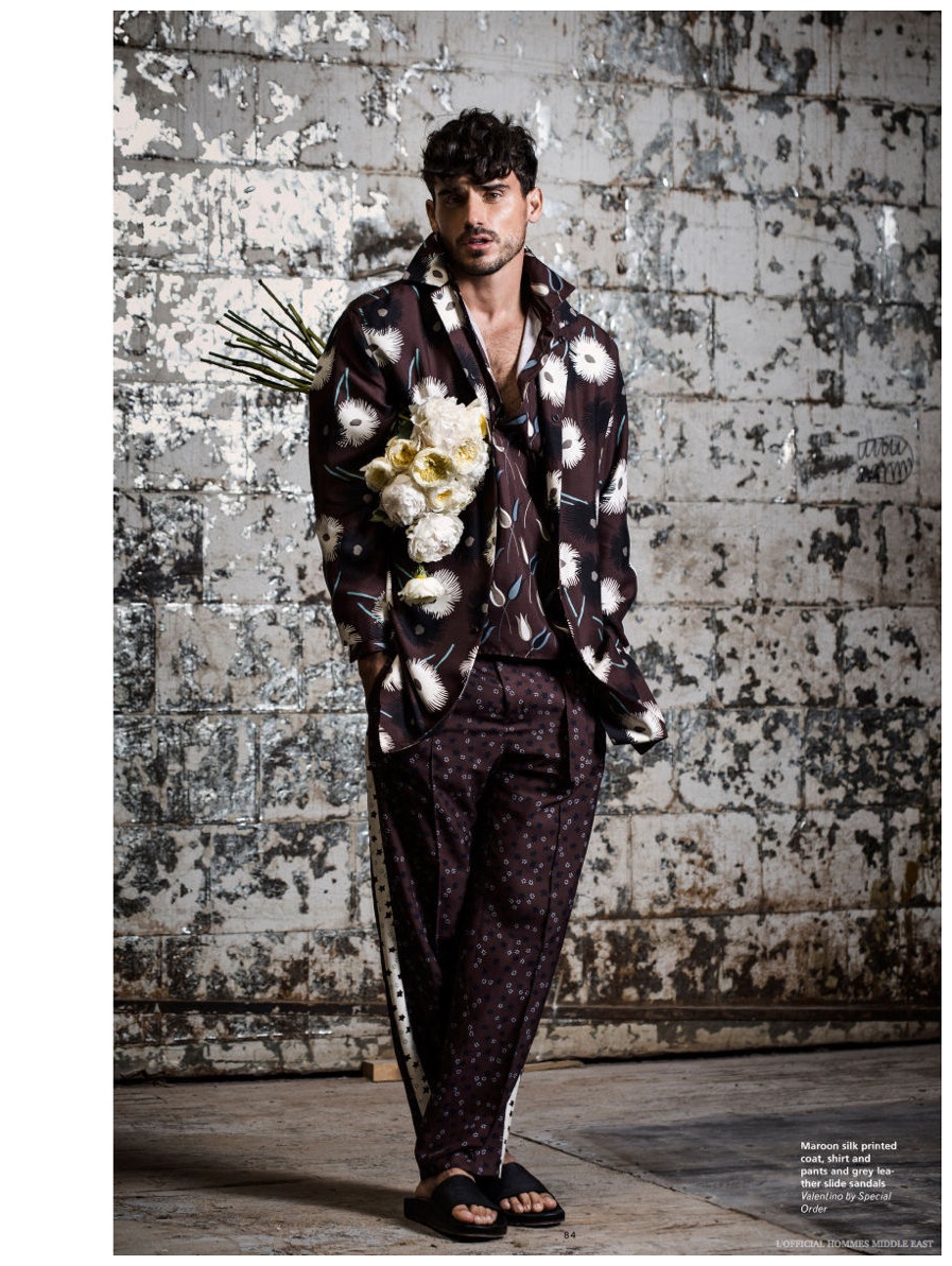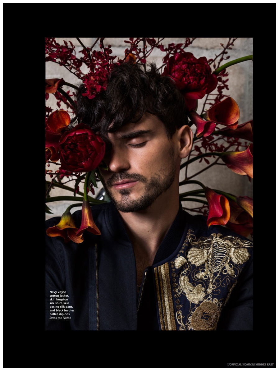 Playing the groom for Tommy Hilfiger’s spring 2015 advertisements, top model Arthur Kulkov takes a break from the wedding party to grace the pages of L’Officiel Hommes Middle East. Reconnecting with Details regular style expert Matthew Marden, Arthur is given a wardrobe of eclectic spring looks that combined decadent prints with a dandy attitude for winning results. Photographed by Greg Vaughan, Arthur poses with flowers and foliage, showing off the latest from Givenchy, Versace, Bottega Veneta and more.