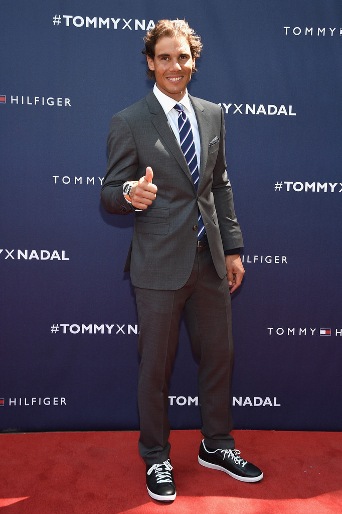 Rafael Nadal hits the red carpet in Tommy Hilfiger Tailoring, finishing his suiting look with sneakers.Pin
