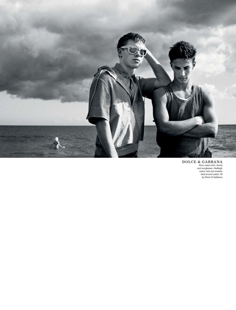 Boy! You Make My Heart Beat Faster–Boyo models Hadleigh Oliver and Matt Rodwell are joined by Select model Arthur Olecki as the trio embraces the summer weather donning the season’s prime collections for a fashion story in Attitude magazine. Photographed by Steeve Beckouet and styled by Frank Strachan, the boys take part in sunny past times as they are garbed in countless spring/summer 2012 looks including Burberry Prorsum jumpers, DSquared2 graphic shirts, Valentino jackets and many more luxe labels.