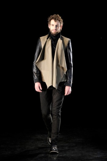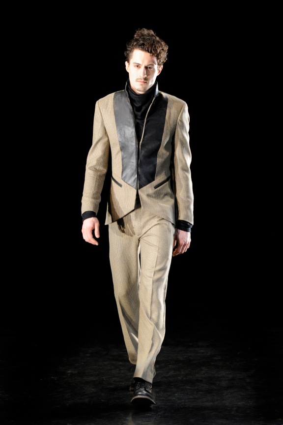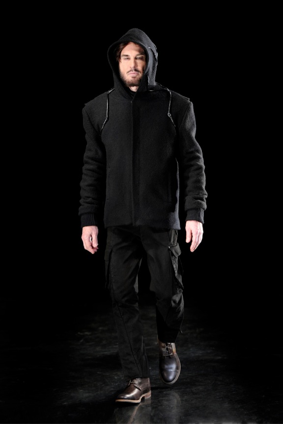 Tracking Style–Blending casual and formal styles, New York-based label Asher Levine turns to a perversion of skills, bats and houndstooth to dress their dark fall/winter 2013 collection. Playing with traditional silhouettes for a combination of slim lines and enlarged details, Levine elevated the showing to the next level, teaming up with Phone Halo for innovative pieces. Armed with Bluetooth technology for the collection’s premium pieces, select clothing and accessories were linked to smart phone tracking so that no luxe essential goes missing.