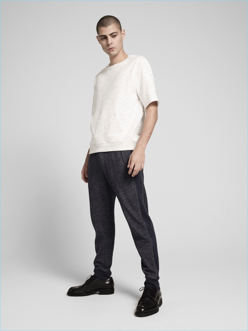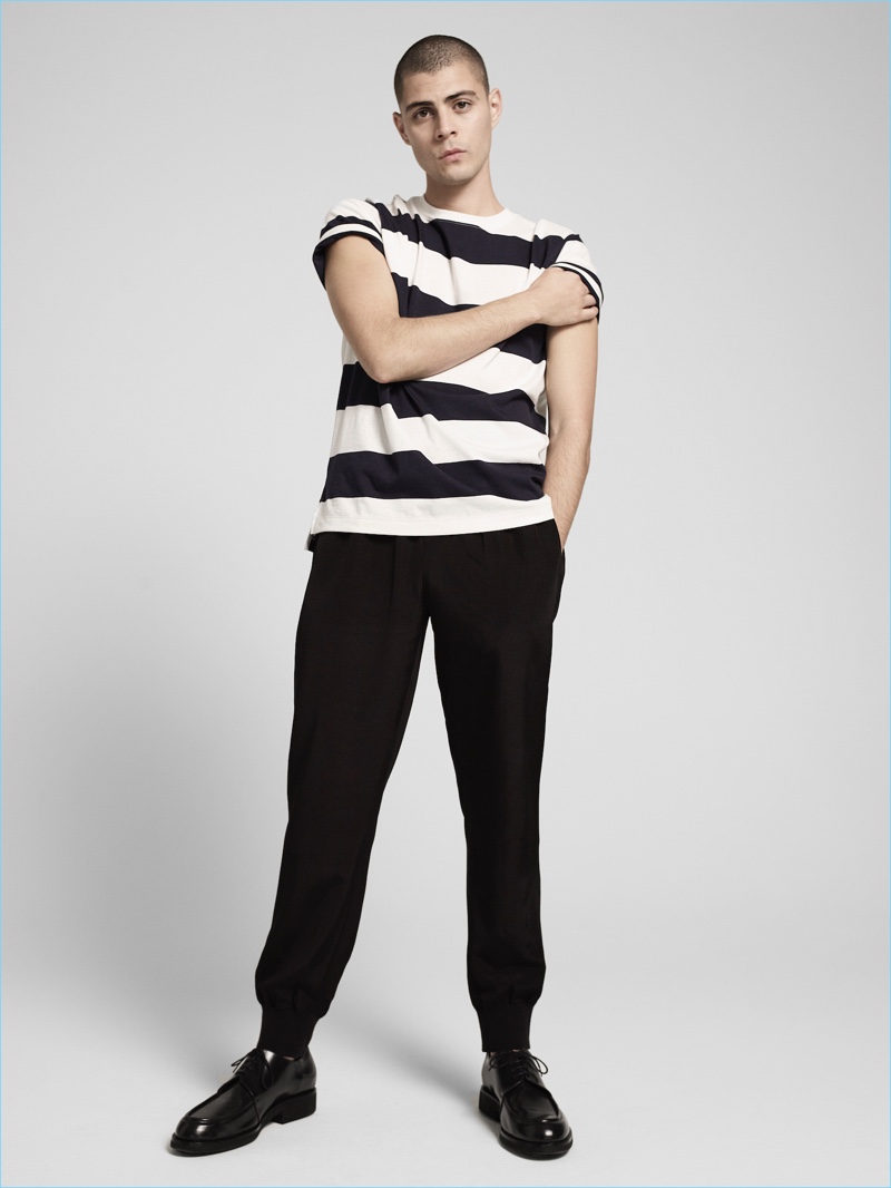 PinModel Micky Ayoub takes to the studio in a striped tee and black pants from ATM’s pre-fall 2017 men’s collection.PinMaking a monochromatic statement, Micky Ayoub wears a white pocket tee and shorts by ATM.PinFront and center, Micky Ayoub dons a short-sleeve sweatshirt and joggers from ATM’s pre-fall 2017 collection.PinGoing casual, Micky Ayoub sports a striped black and white t-shirt with joggers by ATM.PinATM taps Micky Ayoub for its pre-fall 2017 cookbook, which features essentials such as joggers.PinStealing a quiet moment, Micky Ayoub wears a grey sweater from ATM’s pre-fall 2017 collection.