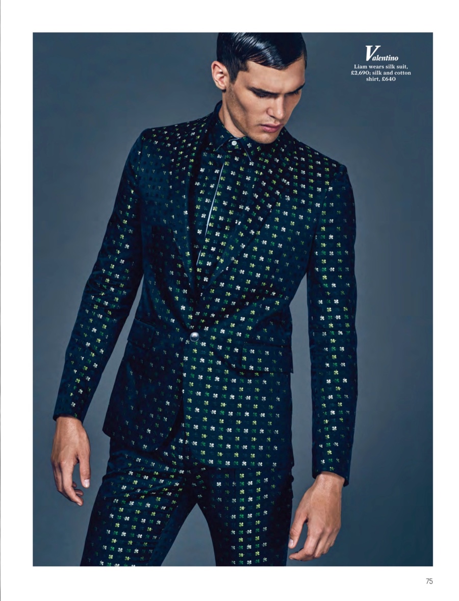 Models Liam Vandiar and Matty Carrington come together for a fall-winter 2015 collections story featured in the latest issue of British magazine Attitude. Sporting various hairstyles to complement the collections, the pair are groomed by hairstylist Daniel Dyer. Hitting the studio with photographer Mark Cant, Liam and Matty indulge in eclectic designs from labels such as Givenchy, Sibling and Moschino, pulled together by stylist Joseph Kocharian. / Makeup by Terry Barber.