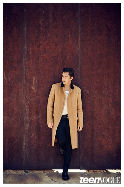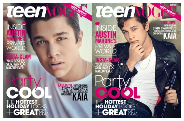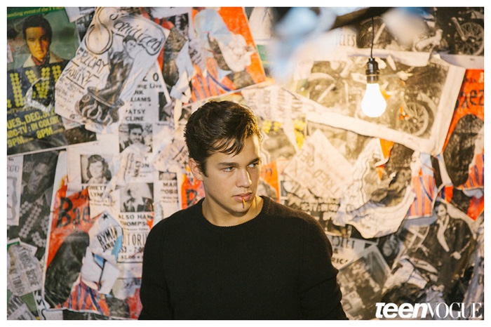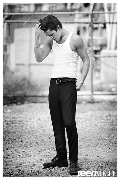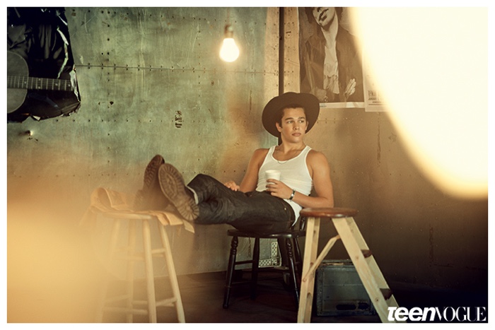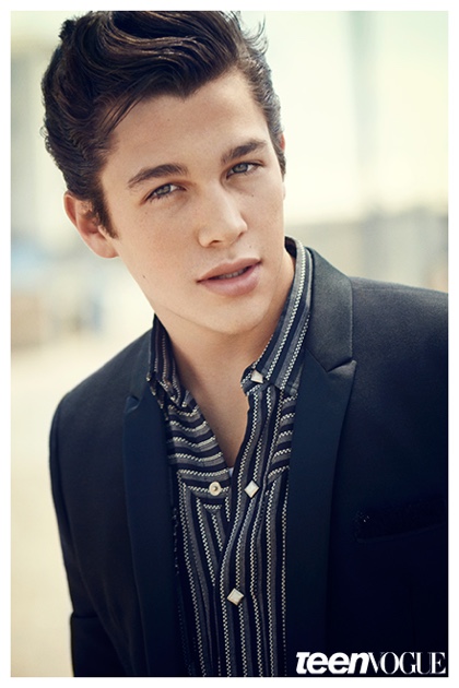 Sporting a leather biker’s jacket, a white wifebeater and denim jeans, singer Austin Mahone covers the December/January 2014/15 issue of Teen Vogue, photographed by Nathaniel Wood. Opening up to the magazine about staying on the straight and narrow path, Mahone shares, “It’s all about the team you hang out with. My friends, they’re all cool, they’re all clean. I don’t want to be that guy who is having problems and going to rehab. I am focused on the music.” Read more at TeenVogue.com.