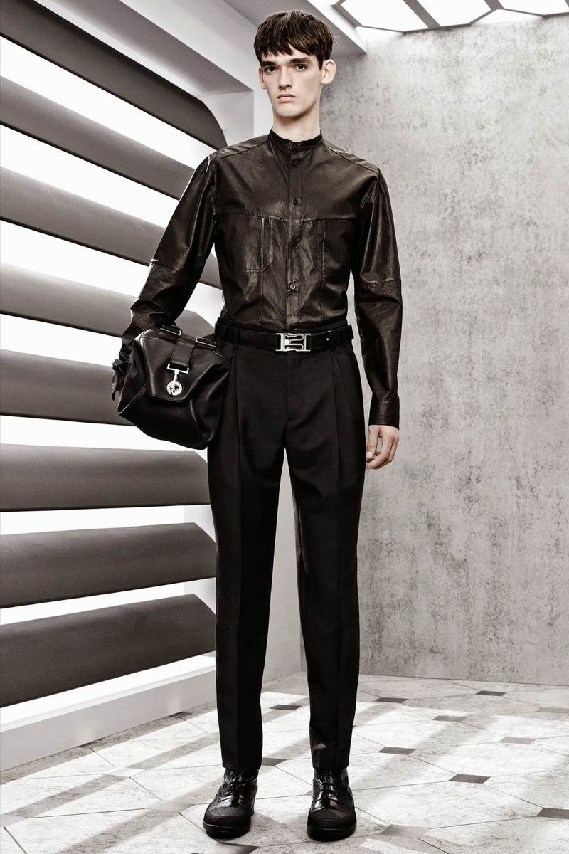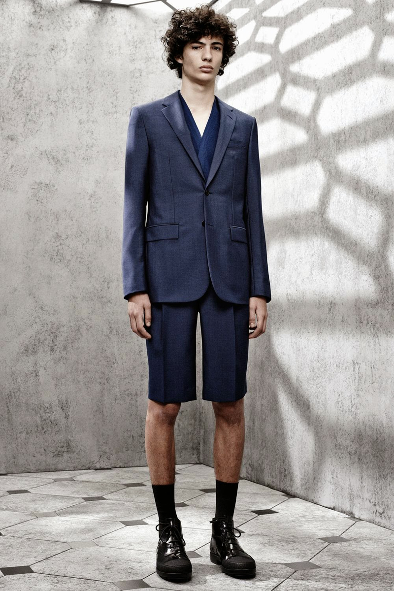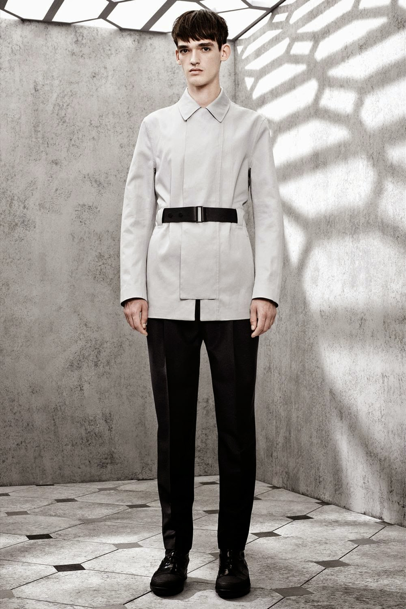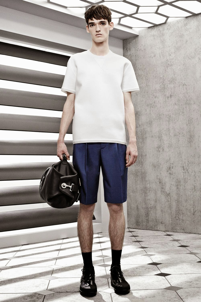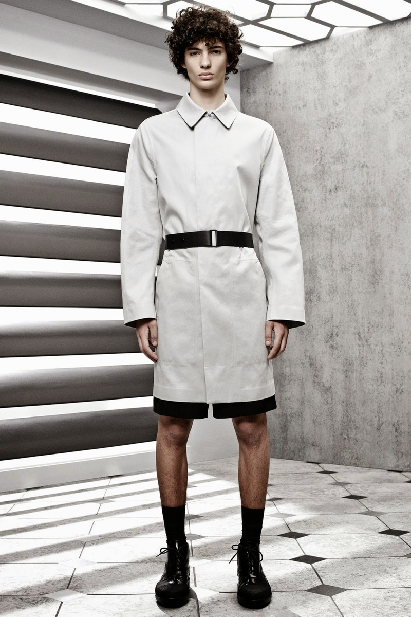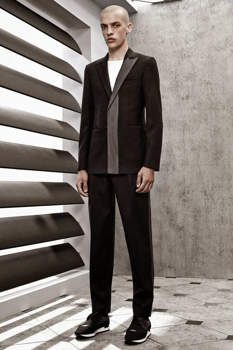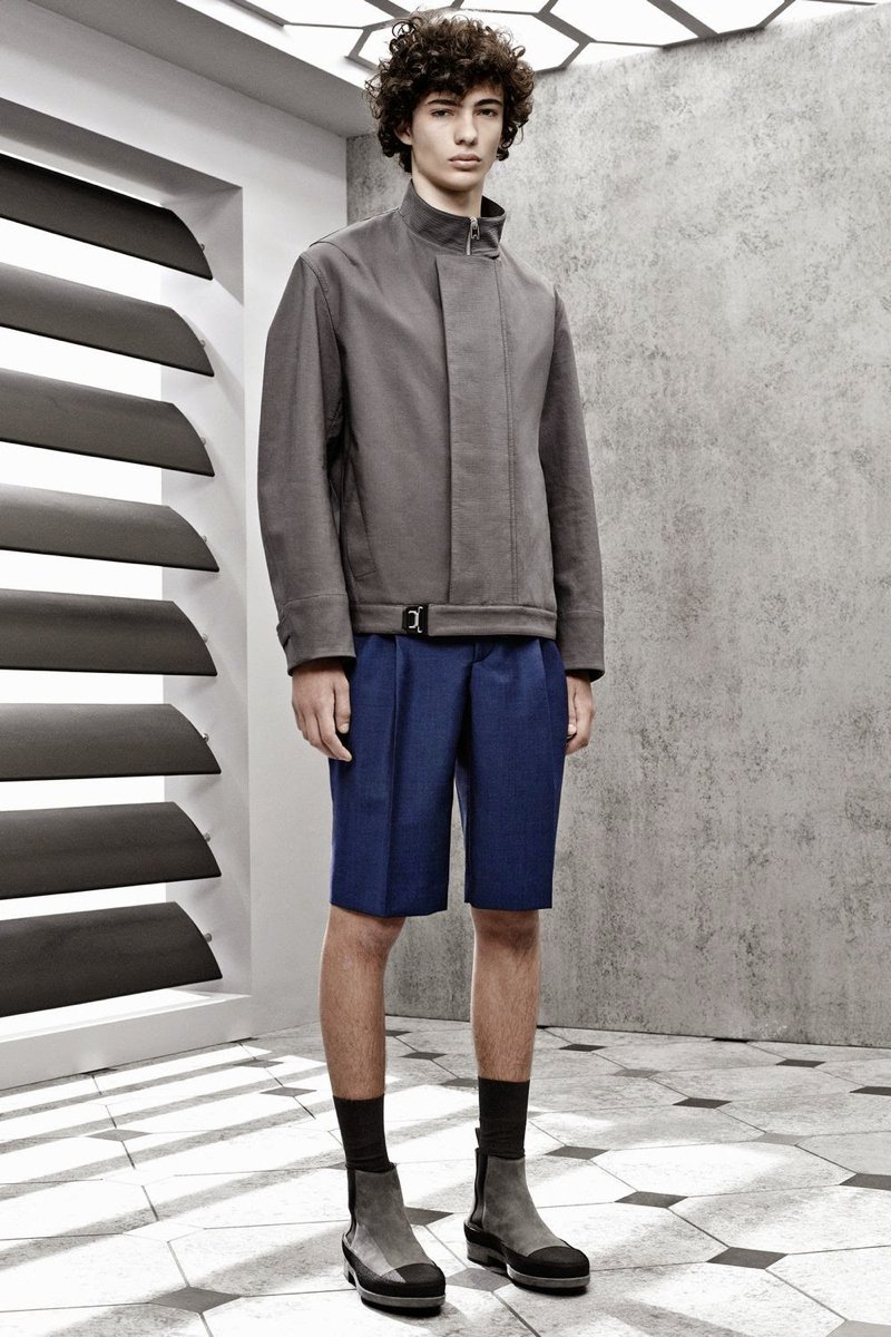 Balenciaga-Men-2015-Spring-Summer-Collection-011PinBalenciaga Spring/Summer 2015–The latest collection from Balenciaga is sharp, concise and to the point. Featuring an understated color palette of black, gray and blue hues, the collection is minimal on the details, highlighting menswear classics like the trench with a concealed closure and a small collar. The same quiet philosophy translates into short-sleeve knits built on structure as well as longer jackets. Adding leather to the mix, the shape is more relaxed for a double-breasted jacket with matching shorts. The heart of the collection, the utilization of luxe fabrics to reinterpret items as simple as the long-sleeve tee and henley are an achievement.