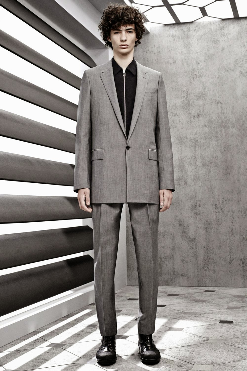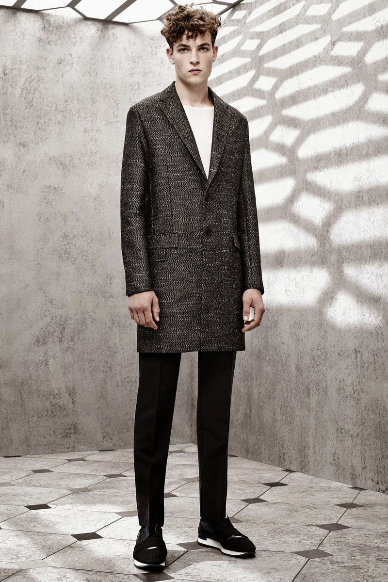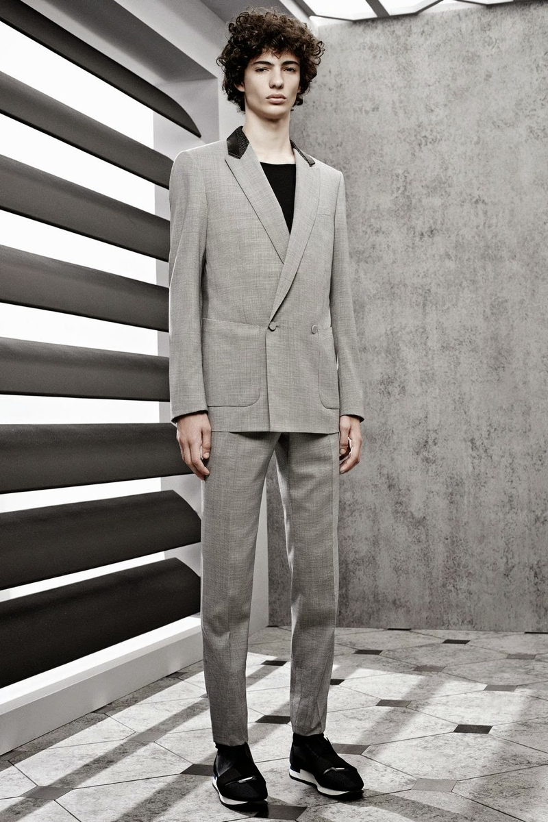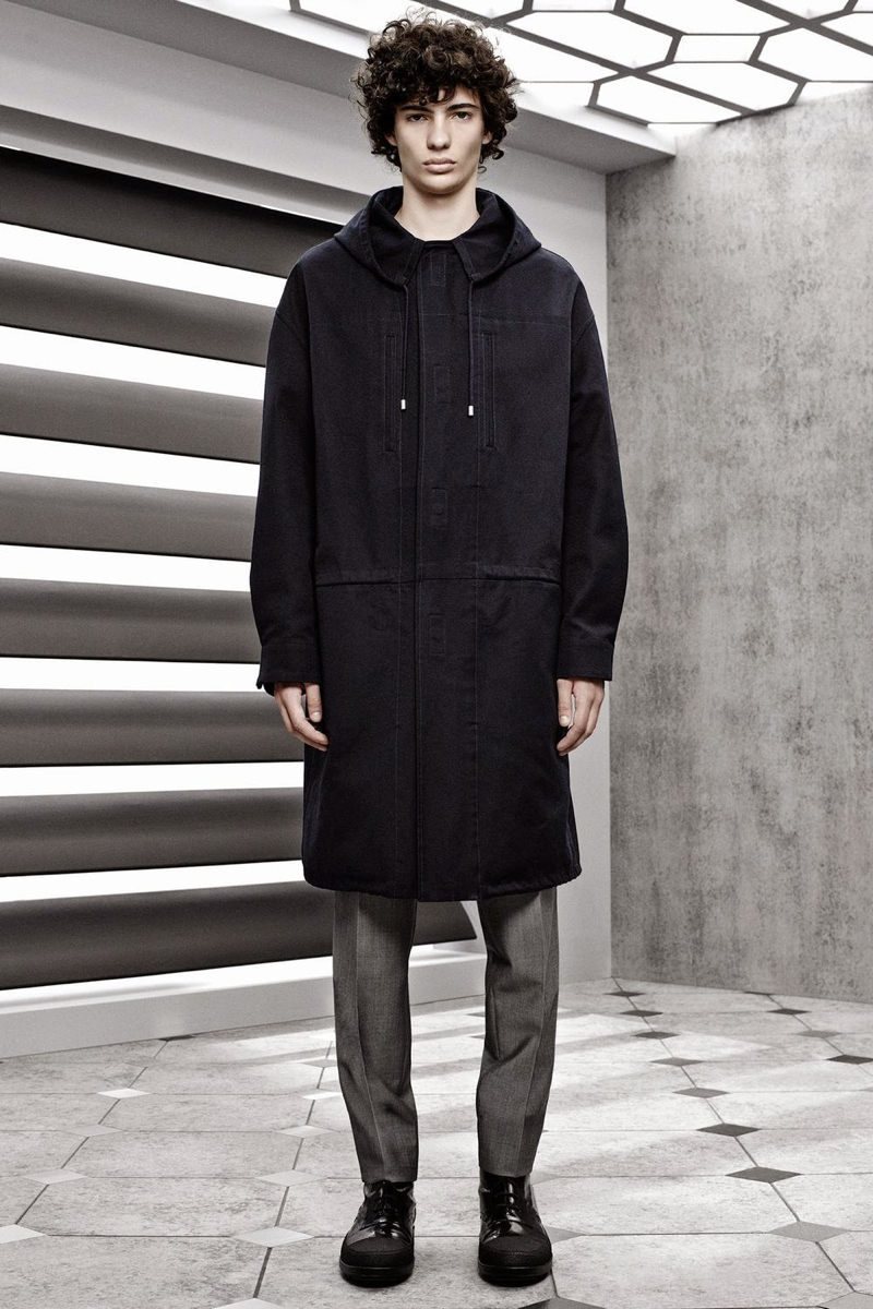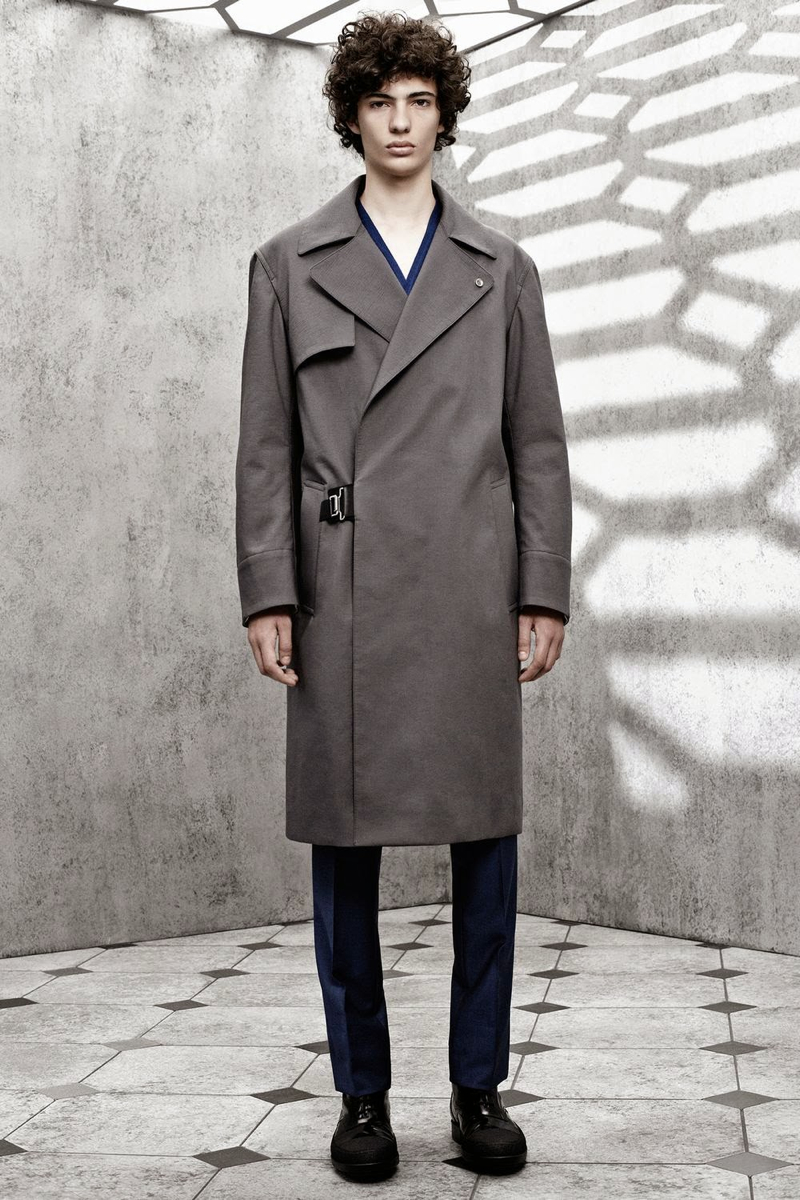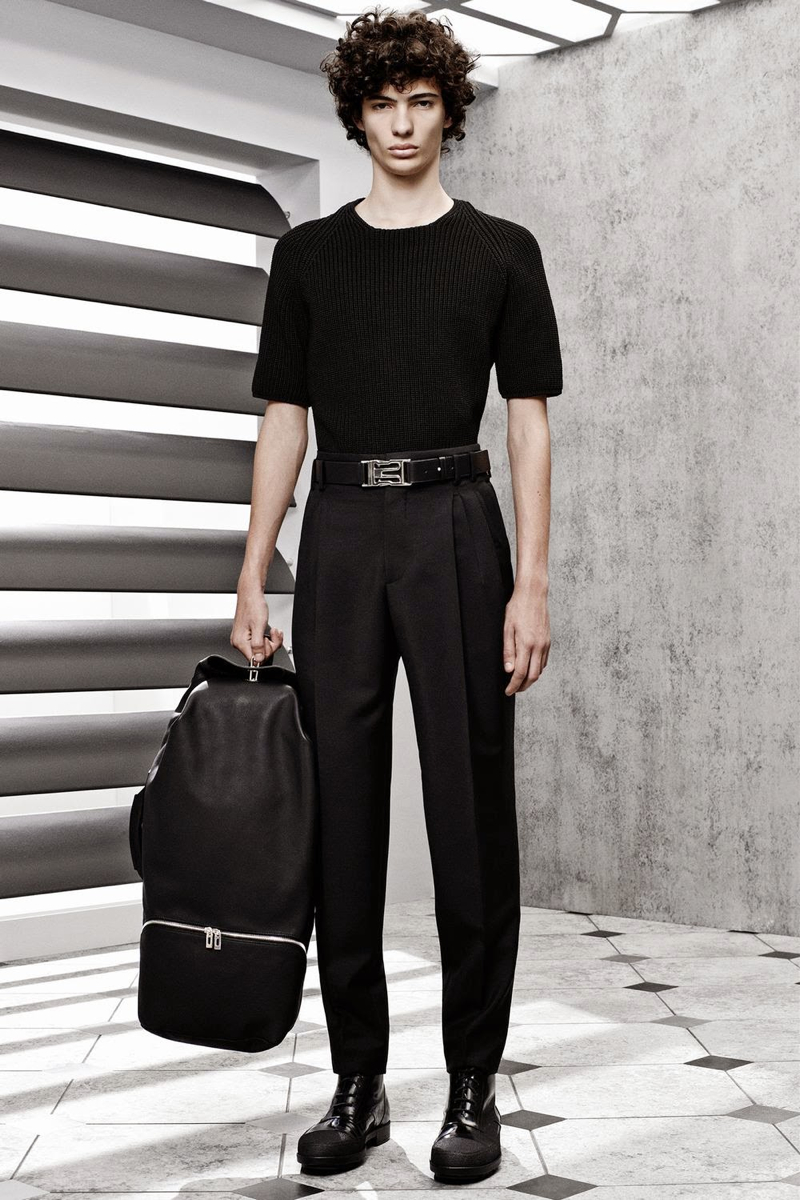 Balenciaga-Men-2015-Spring-Summer-Collection-011PinBalenciaga Spring/Summer 2015–The latest collection from Balenciaga is sharp, concise and to the point. Featuring an understated color palette of black, gray and blue hues, the collection is minimal on the details, highlighting menswear classics like the trench with a concealed closure and a small collar. The same quiet philosophy translates into short-sleeve knits built on structure as well as longer jackets. Adding leather to the mix, the shape is more relaxed for a double-breasted jacket with matching shorts. The heart of the collection, the utilization of luxe fabrics to reinterpret items as simple as the long-sleeve tee and henley are an achievement.
