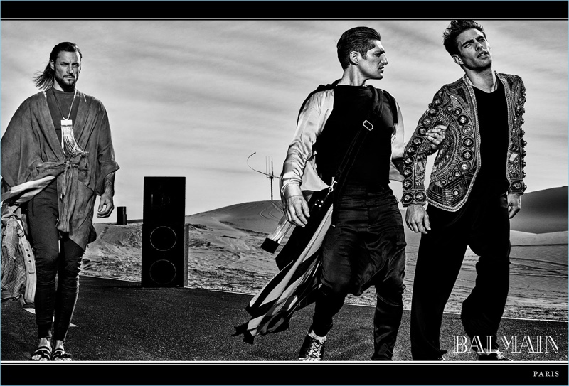 Balmain travels to California for its spring-summer 2017 campaign. The French fashion house reunites with photographer Steven Klein for the advertisement. Top models steal the glamorous scene with Tony Ward, Gabriel Aubry, and Jon Kortajarena taking to the desert.