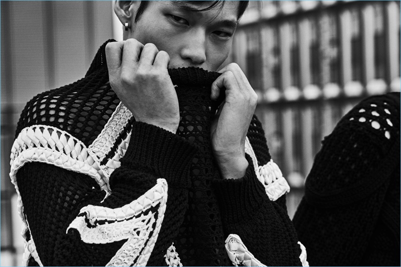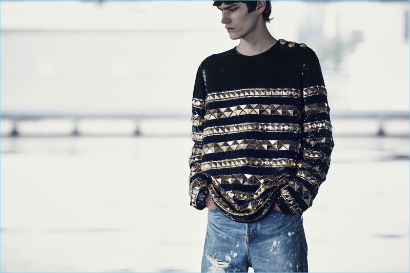 A chic vision, Elias de Poot wears a resort 2019 look from Balmain.Pin