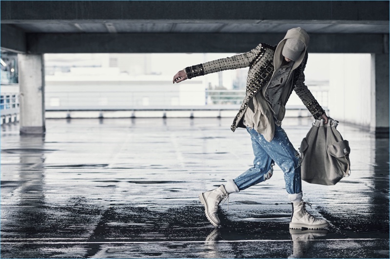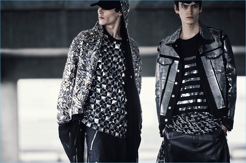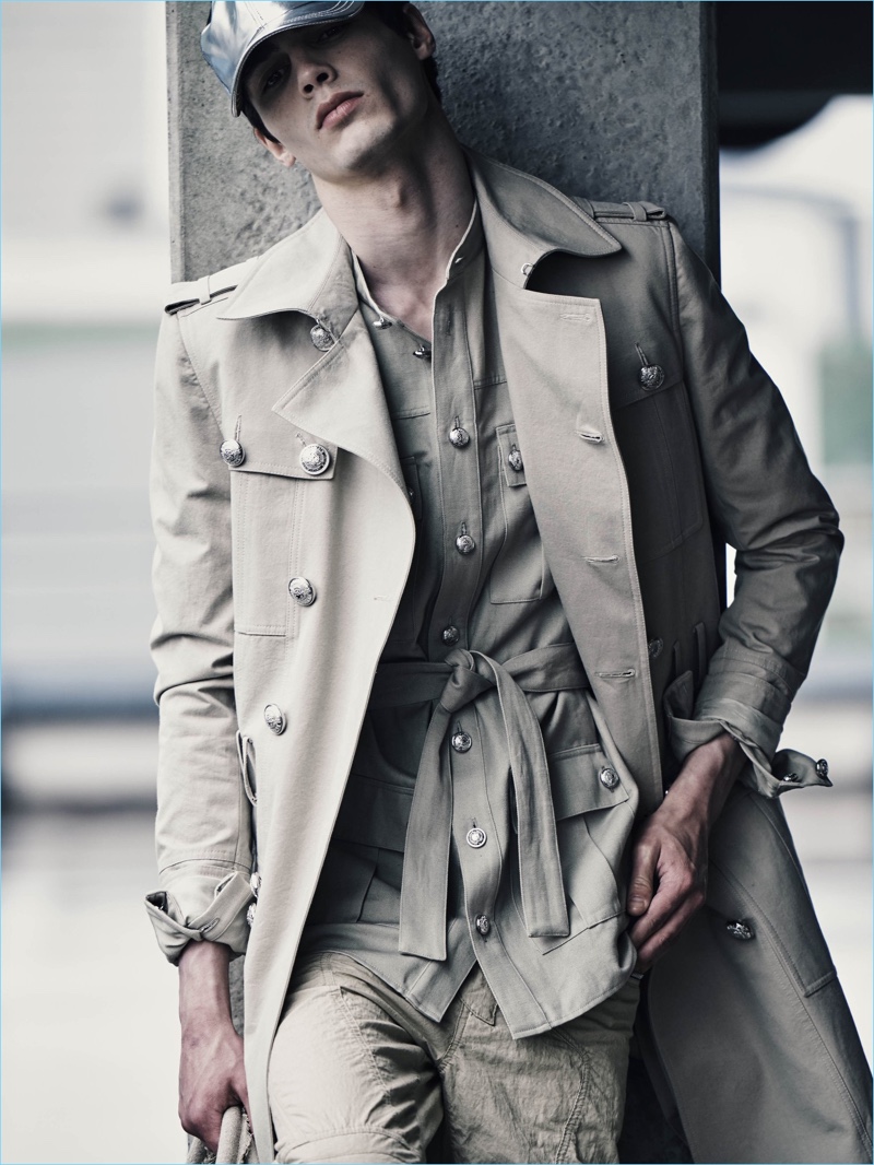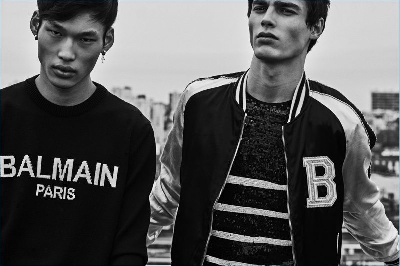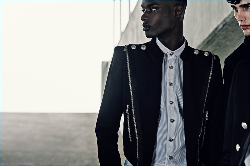 The French designer continues, For those of us who live here, Paris is a city filled with surprising contrasts, with an unequaled richness of all sorts of environments—and today’s Balmain man is equally at home in every part of it. His wardrobe, as this collection shows, mirrors his varied interests and moods, incorporating strands of urban luxury, bohemian attitude and a modern daring and sophistication.